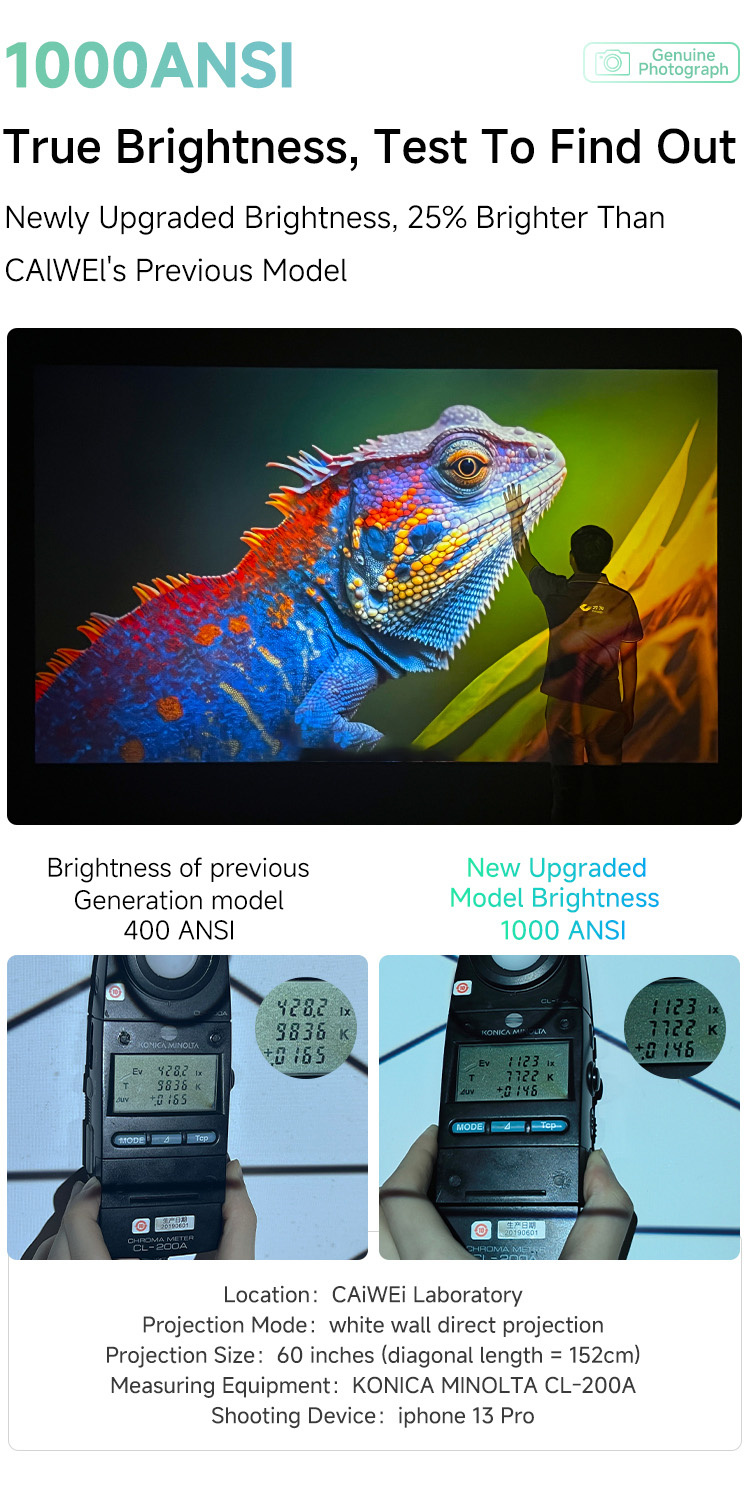 1. Enhanced Visual Clarity: Equipped with a 1000 ANSI brightness and coated all-glass lens, ensuring stunning 4K visuals and true-to-life colors.