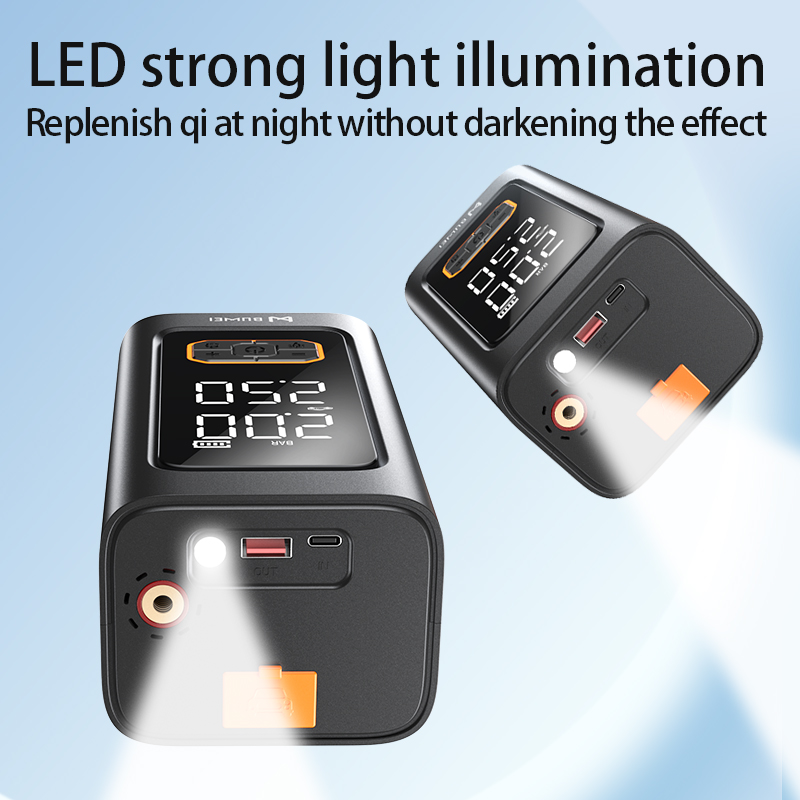 【88W Fast Inflation & Precision Control】 Equipped with a high-power 88W motor and a 22mm cylinder for rapid tire inflation. Customize pressure settings with real-time monitoring on screen (PSI, BAR, KPA, KG/CM²) and enjoy auto-shutoff when the target pressure is reached for safe, hands-free operation.