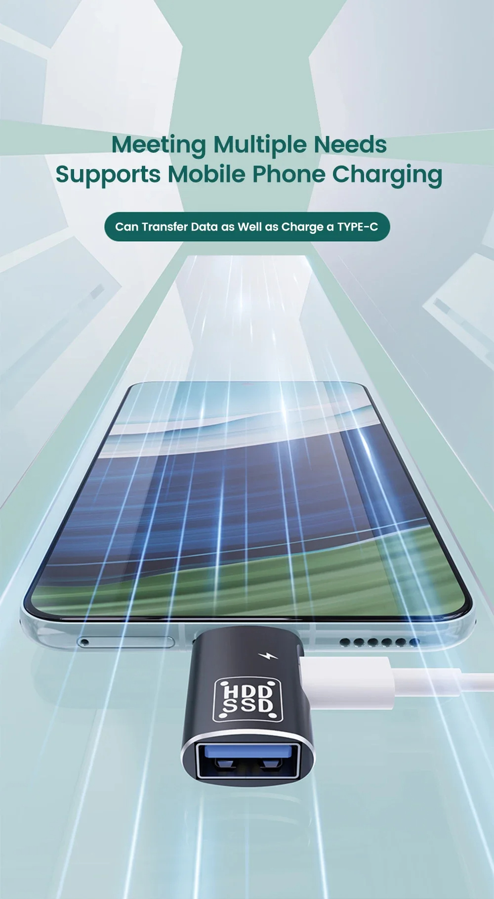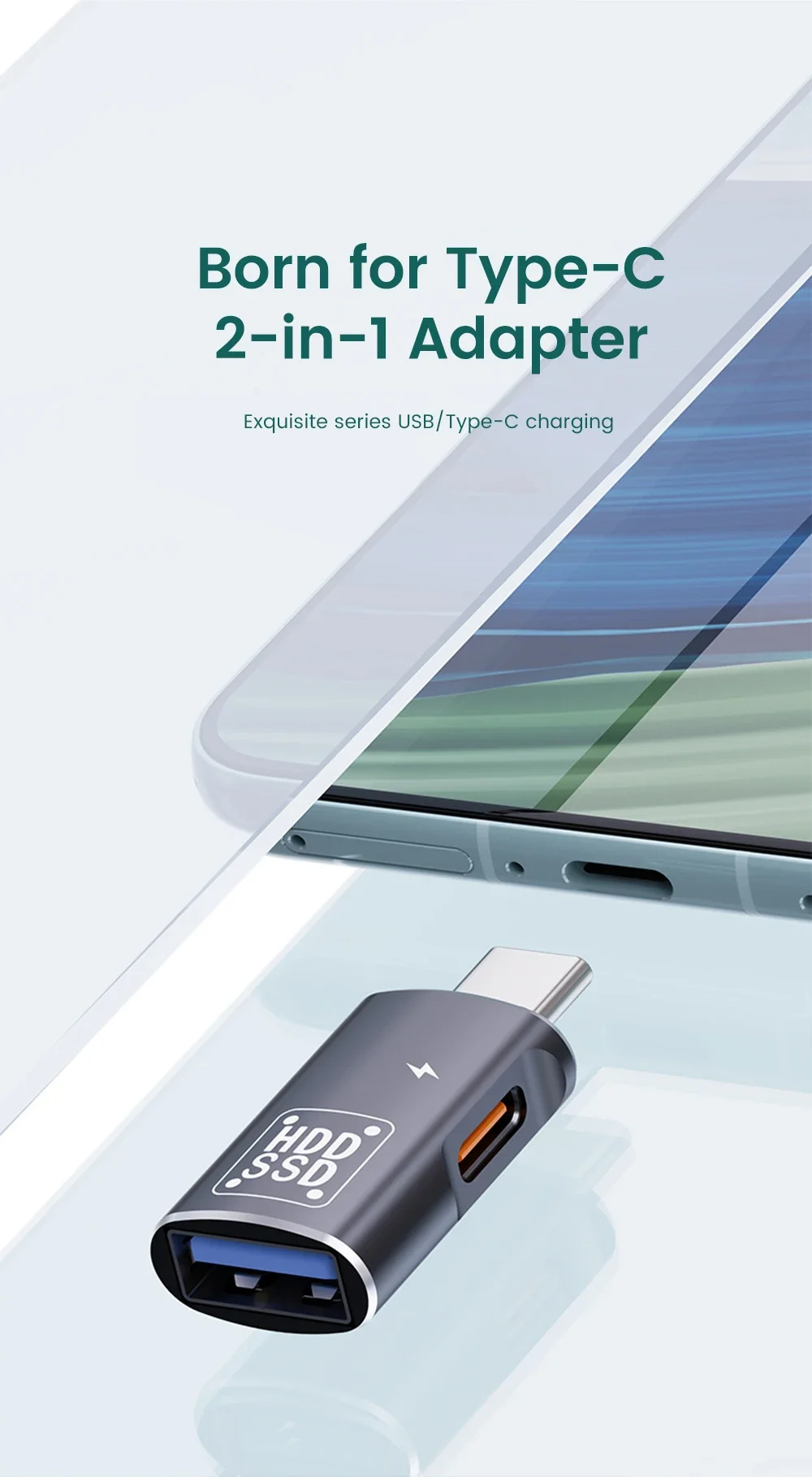 1. 2-in-1 Functionality: Combines Type-C charging and USB data transfer for streamlined use with multiple devices.