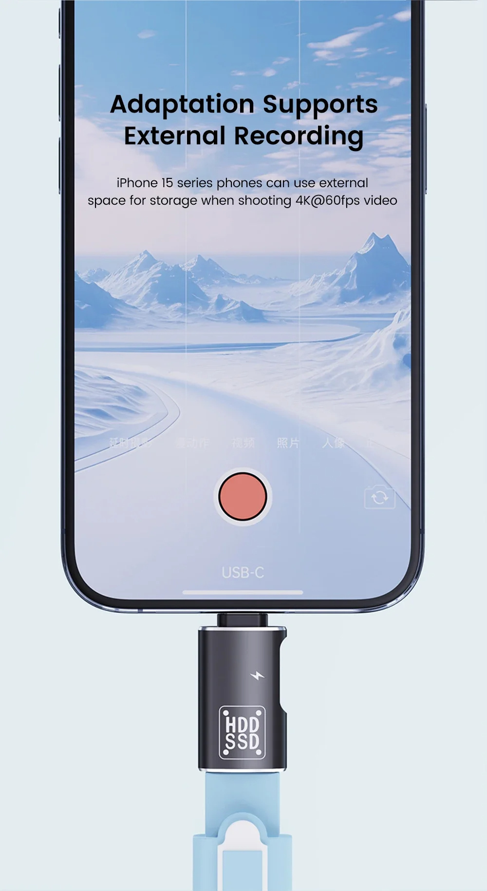 5. External Expansion: Allows external recording and storage, compatible with 4K@60fps video shooting for iPhone 15 series and beyond.