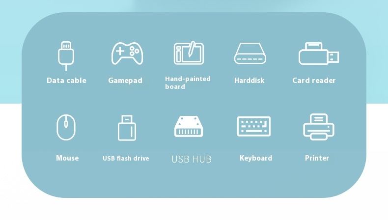 1. Multi-functional Compatibility: Supports connections for data cables, game controllers, drawing tablets, external hard drives, card readers, keyboards, printers, USB drives, USB hubs, and mice.