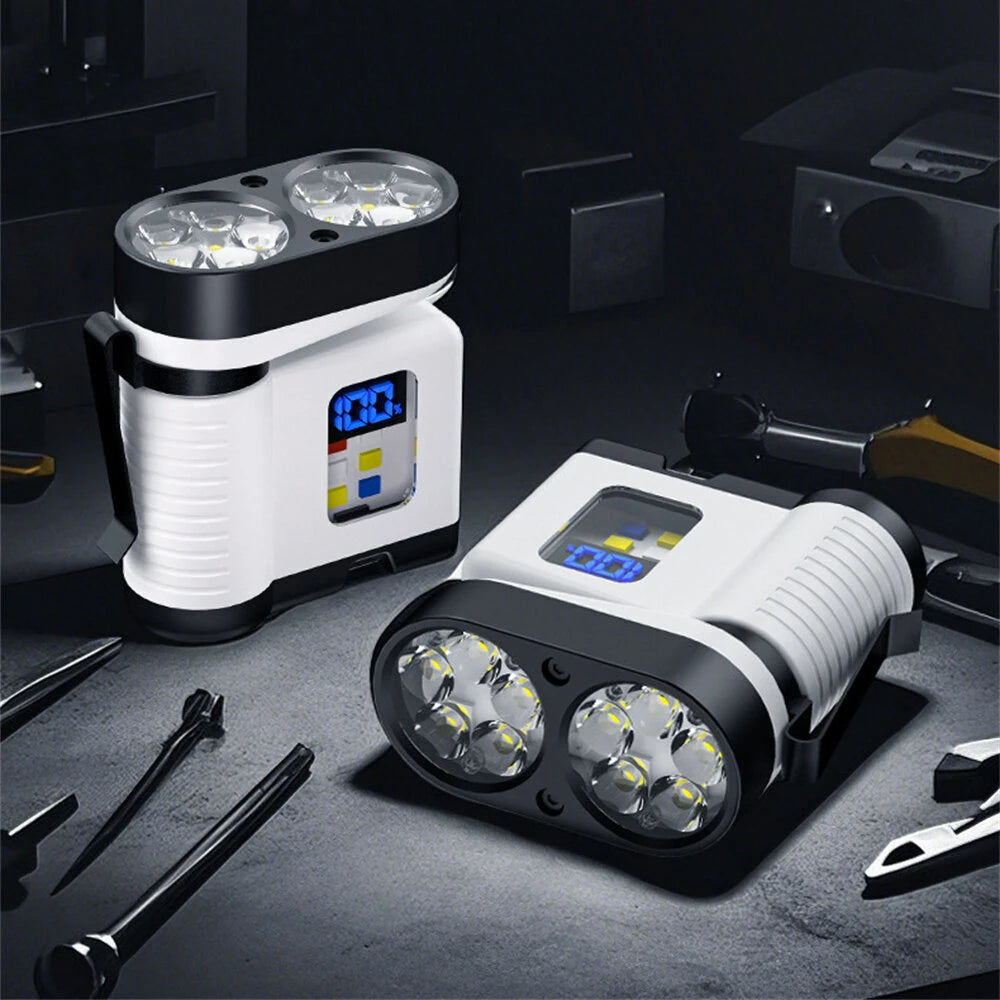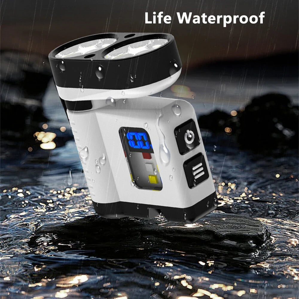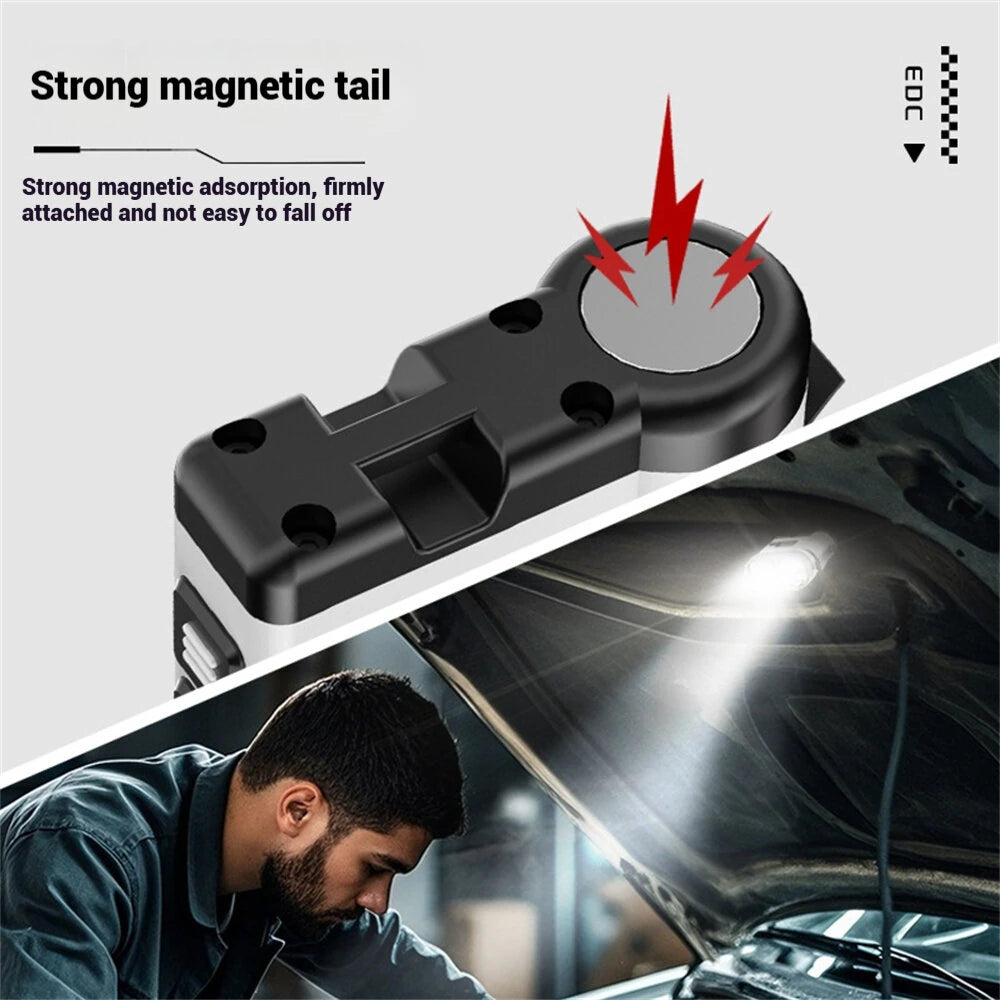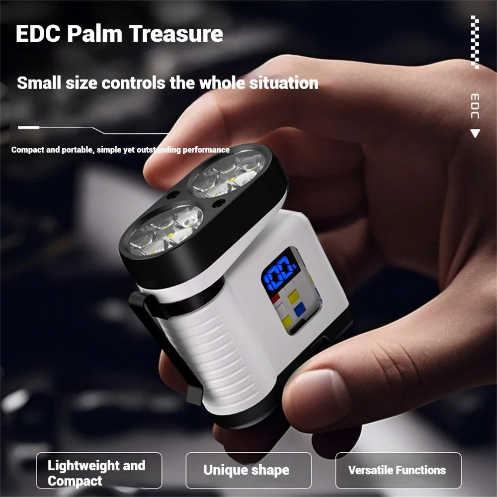 10*LED Strong Light Portable Keychain Flashlight Multi-Functional Magnetic Mini Clip Light USB Rechargeable Digital Display Waterproof Outdoor Red & Blue Warning Work Lamp Signal Camping EDC Tools