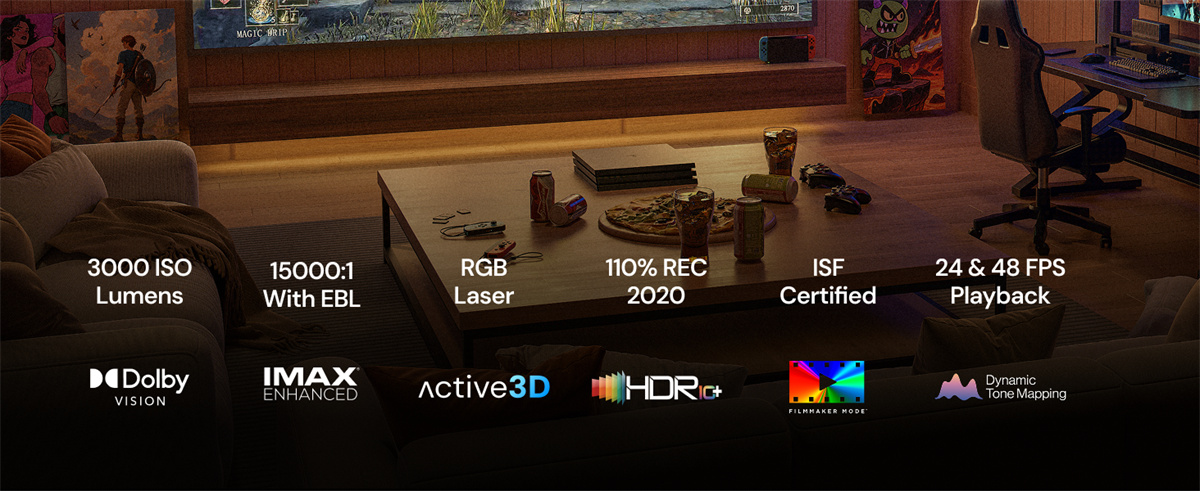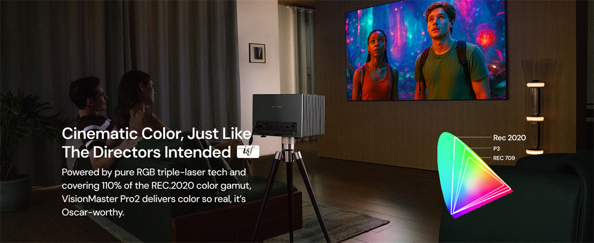 2. Superior Color Accuracy: RGB laser technology, 110% Rec.2020 color gamut, ISF-certified.