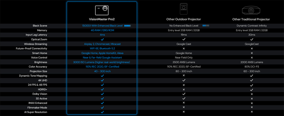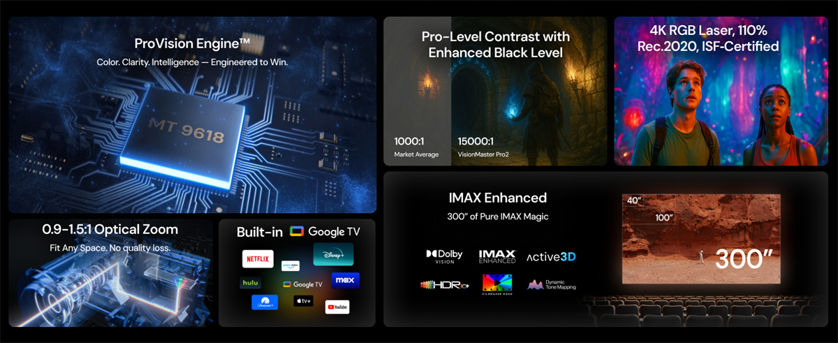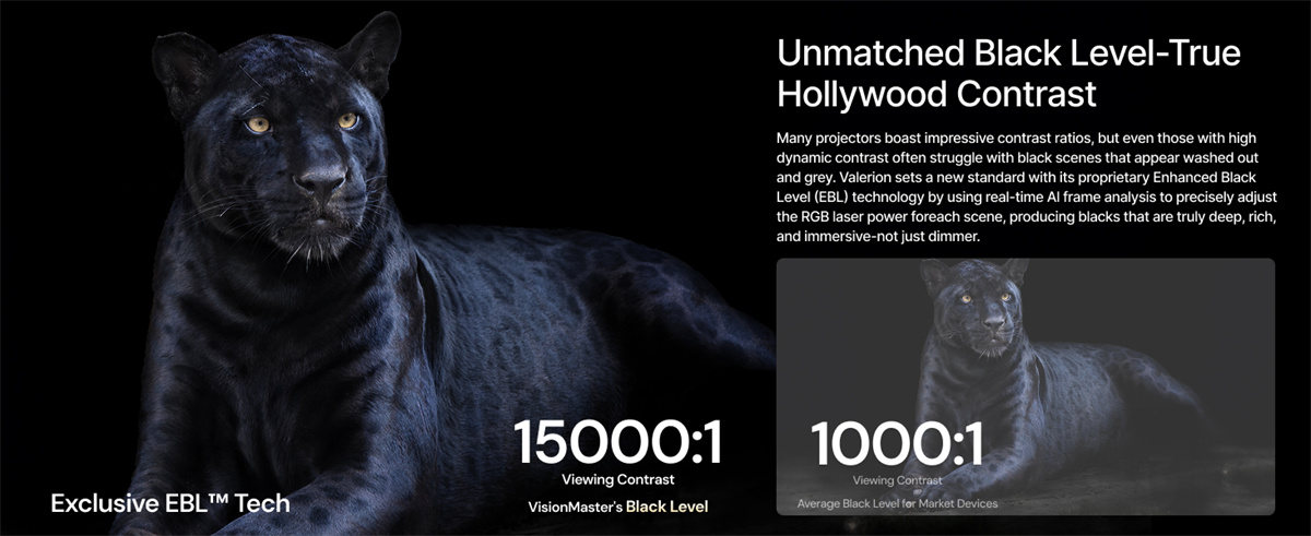 1. Advanced Contrast: 15000:1 Enhanced Black Level for true cinematic experiences.