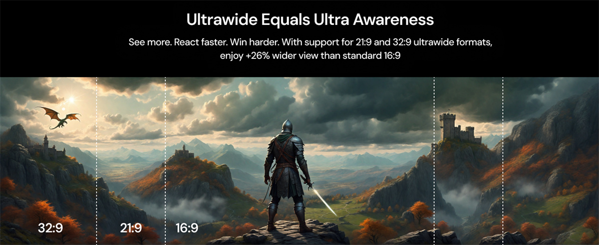 4. Gaming-Optimized Performance: 240Hz smooth visuals, 4ms low input lag, ultrawide formats.