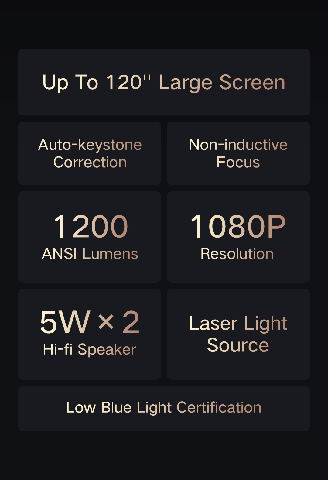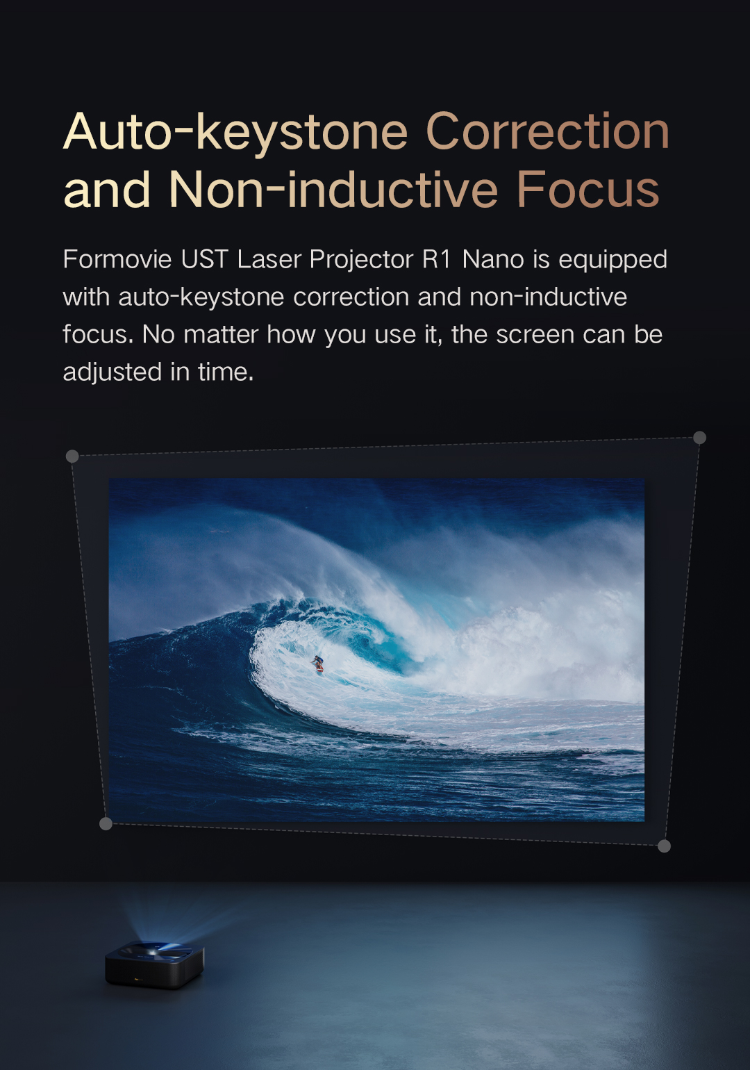 2. Auto-Keystone Correction and Non-Inductive Focus: Enables precise screen adjustments for an optimized viewing experience.