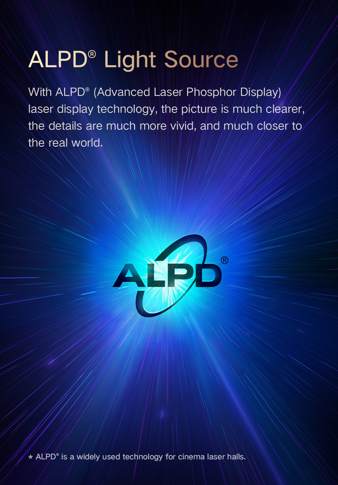 1. Ultra-Short Throw Projection: Provides screen sizes from 40' to 120' with minimal space requirements.