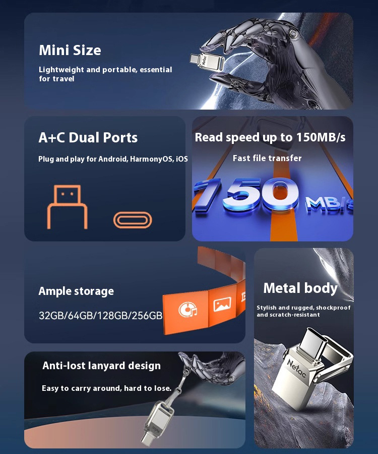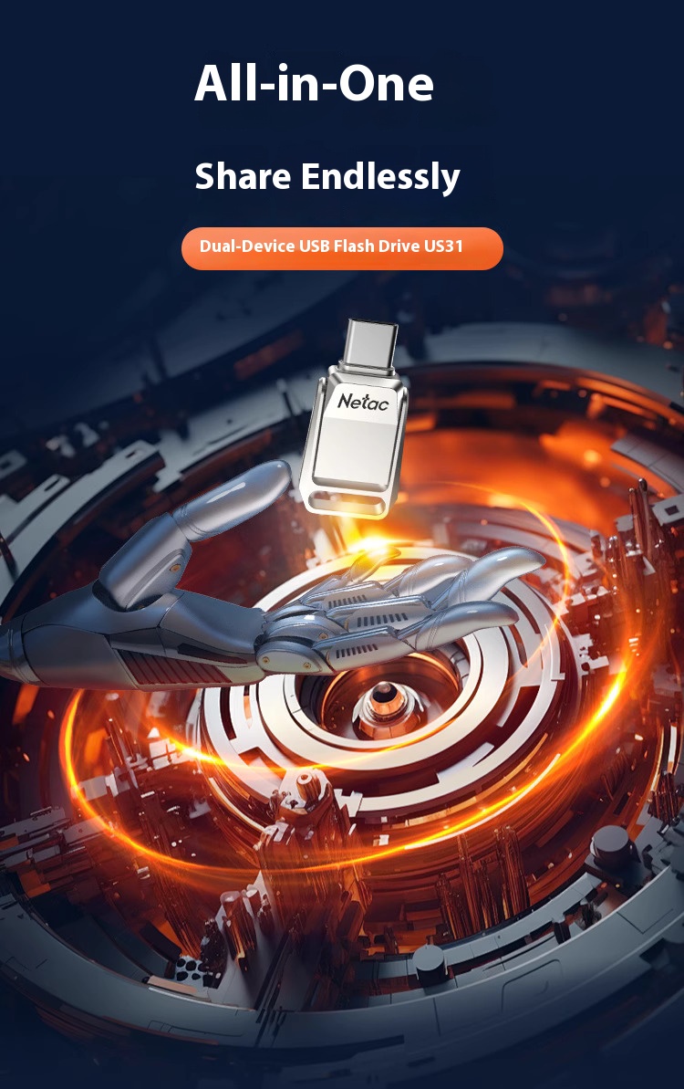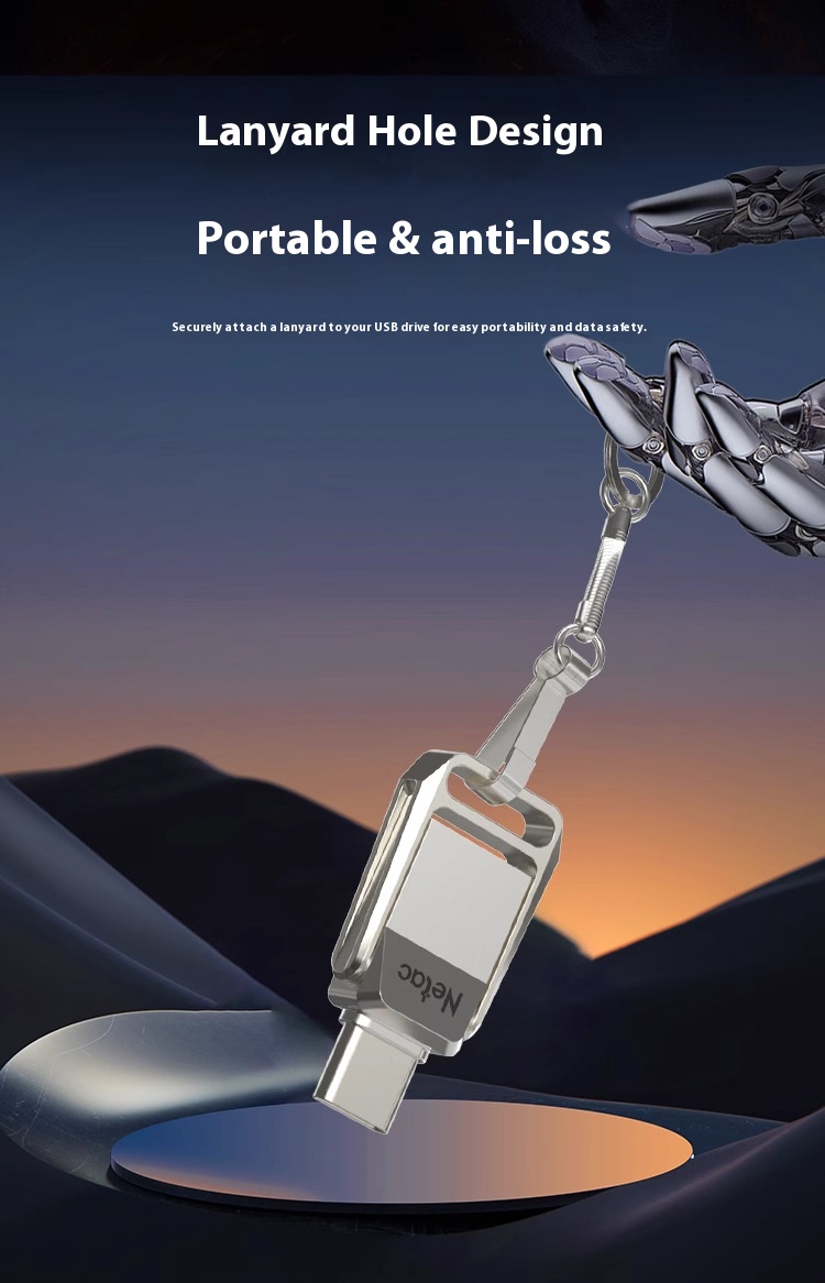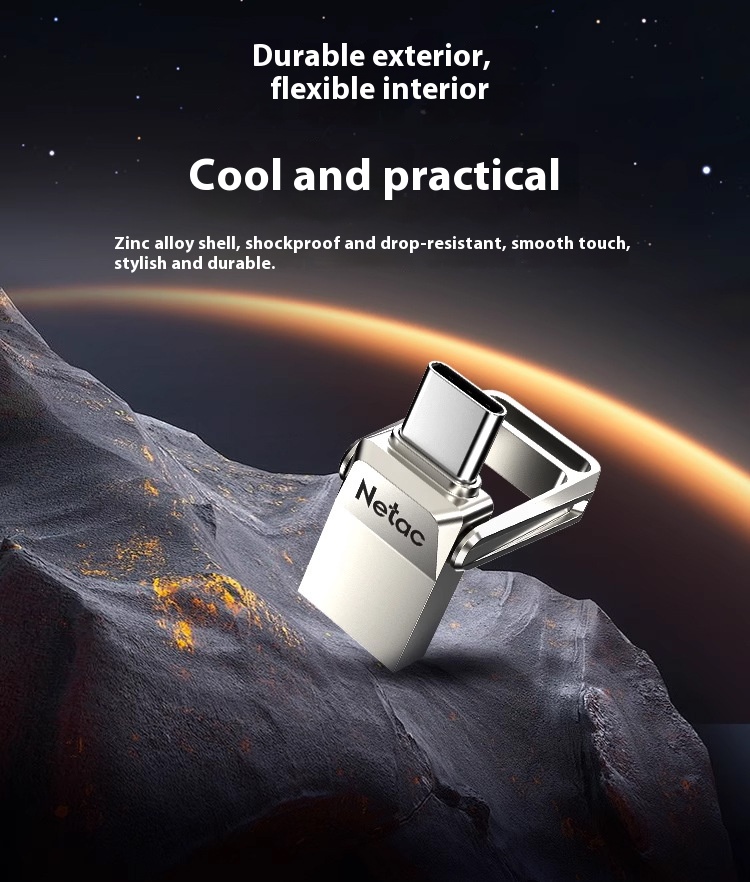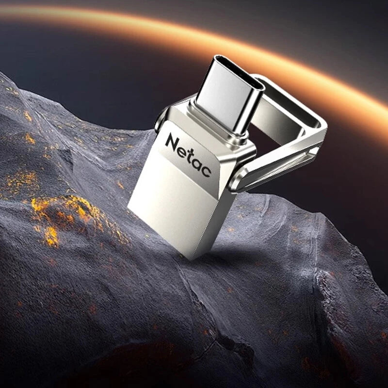Netac US31 Type-C & USB3.2 Flash Drive 128G/64G/32G Zinc Alloy Mini Portable Memory U Disk for PC Phone Projector Car Speaker