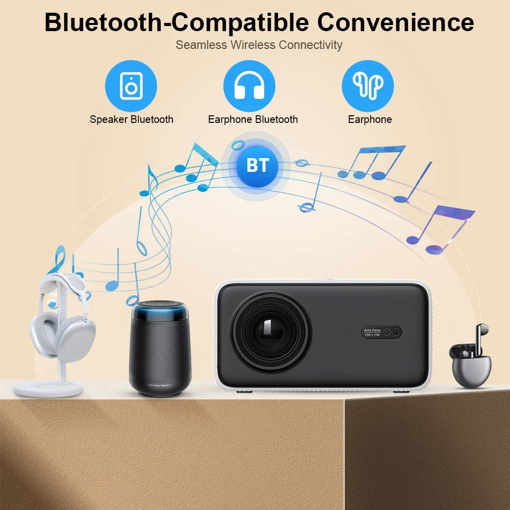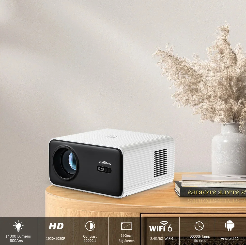 ThundeaL TD85W Portable Full HD 1080P Android 12 Projector 14000 Lumens WiFi 6 & bluetooth-Compatible Auto Focus Keystone Correction Home Theater Built-in 5W Speaker Mini Smart Projector