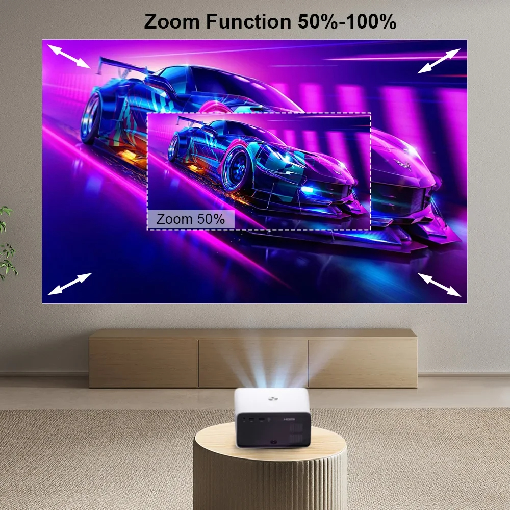 3. Smart Keystone Correction: Includes autorectification with 6D keystone adjustments and zoom functionality (50%-100%).