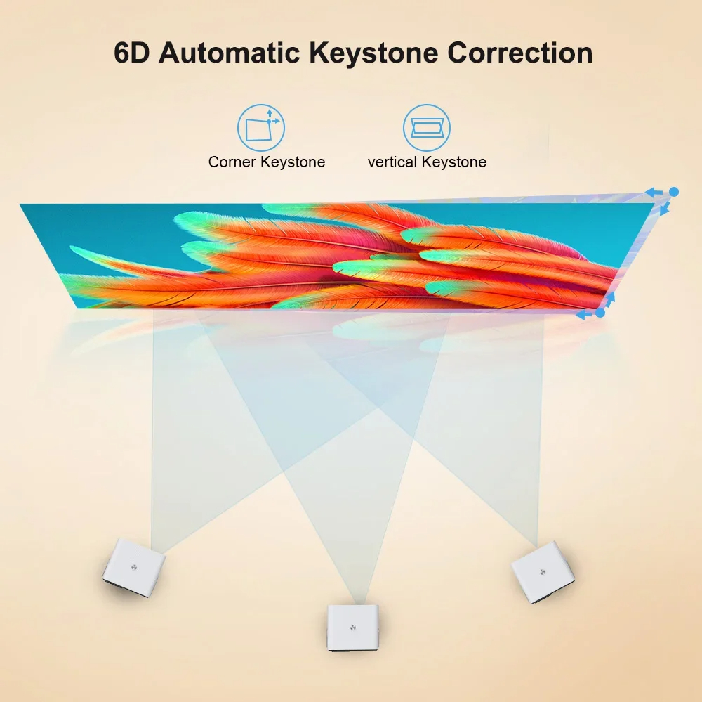 6D Keystone : Support 4 point Corner Auto keystone correction for side projection +/- 70 Degree ,and Auto Vertical +/-70 Degree