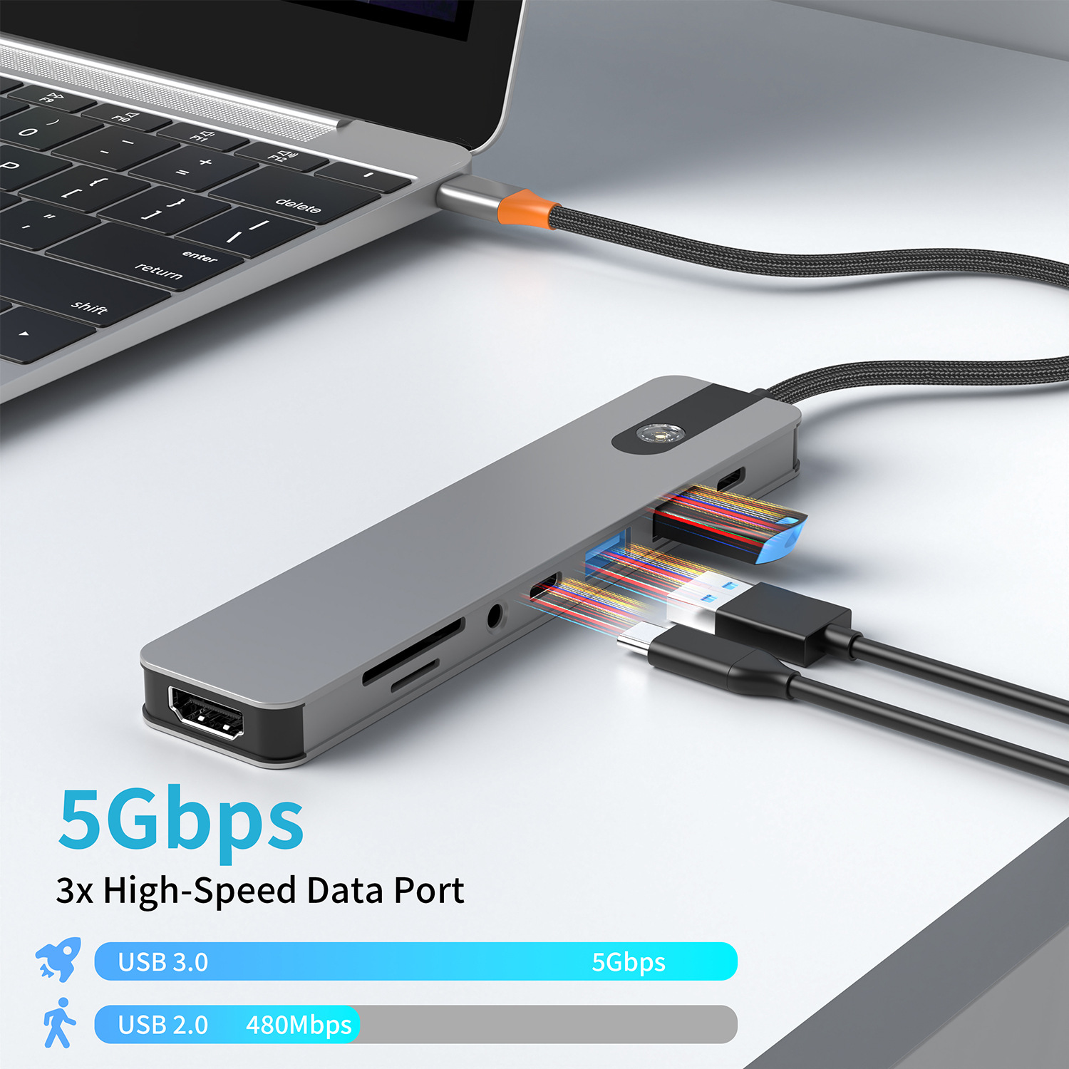 1. Multiple Connectivity Options: Supports 8 functions in one compact device, allowing you to connect multiple peripherals seamlessly.2. Ultra High Definition Output:*HD port supports 4K video output at 60Hz, perfect for high-resolution displays and presentations.