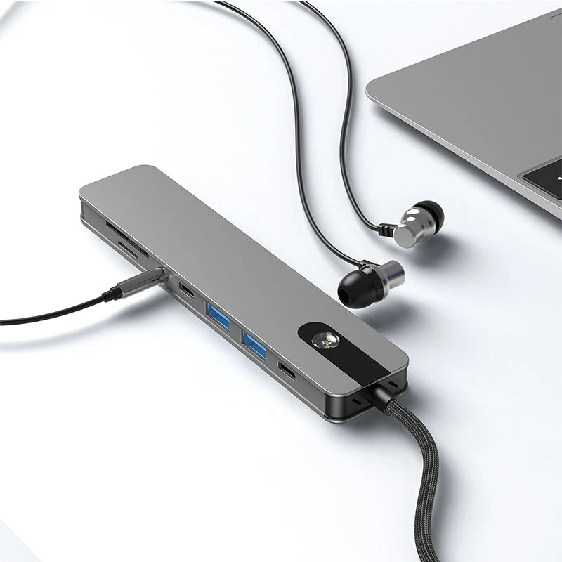 8-in-1 Type-C Docking Station USB Adapter with USB3.0*2 / Type-C 3.0 / PD100W / 4K60Hz HD / 3.5mm Audio / SD/TF Card Reader Slot Multiports USB Hubs