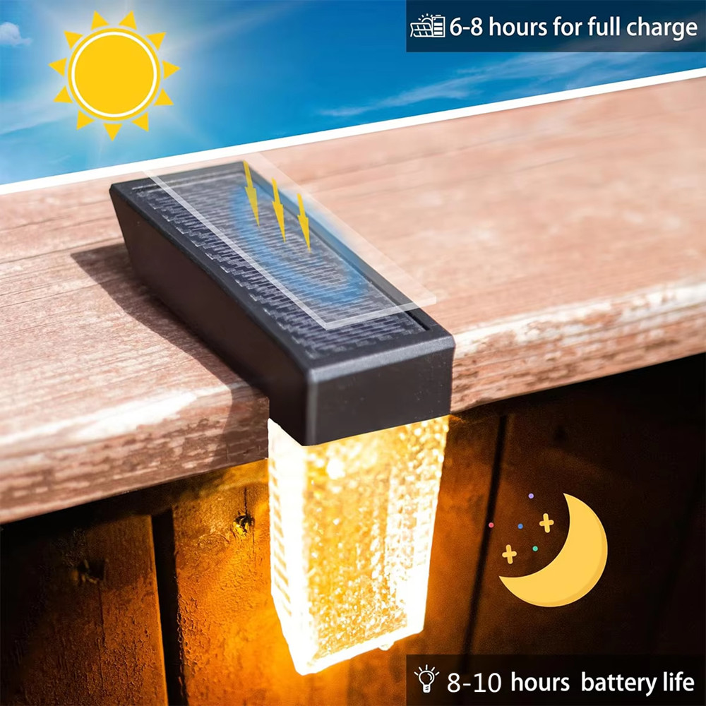 - Solar Powered: The solar fence light has a 700mAh built-in battery, equipped with a solar panel which has high conversion efficiency, and it can work for 6~8 hours at night only need to 8 hours to fully charge under full direct sunlight.