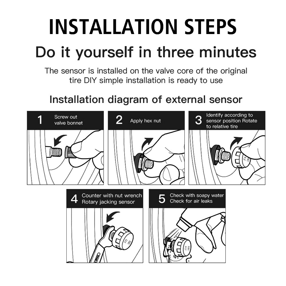 - Real-time automatic monitoring and warning of information, such as low tire pressure, high tire pressure, rapid air leak, high tire temperature and low battery voltage.