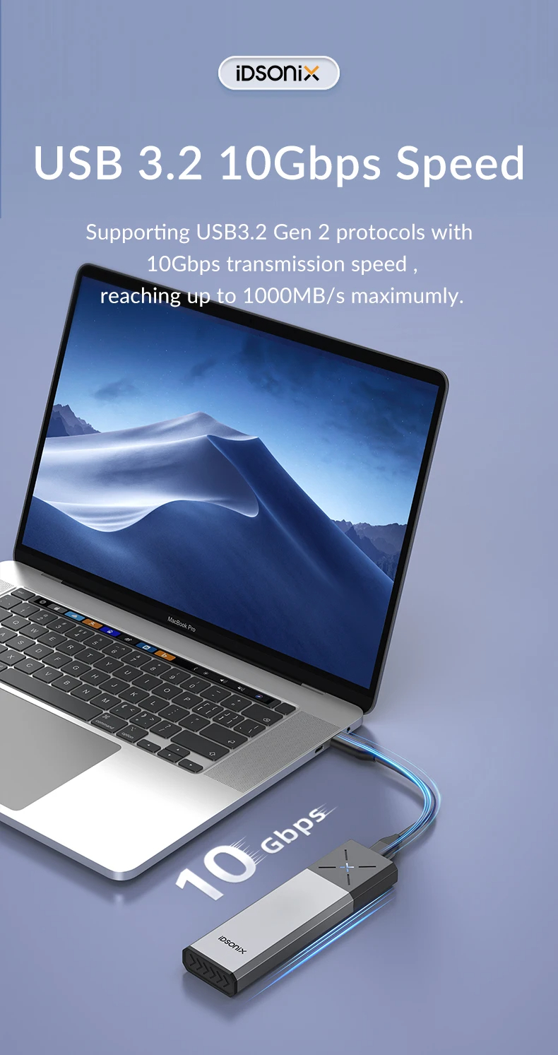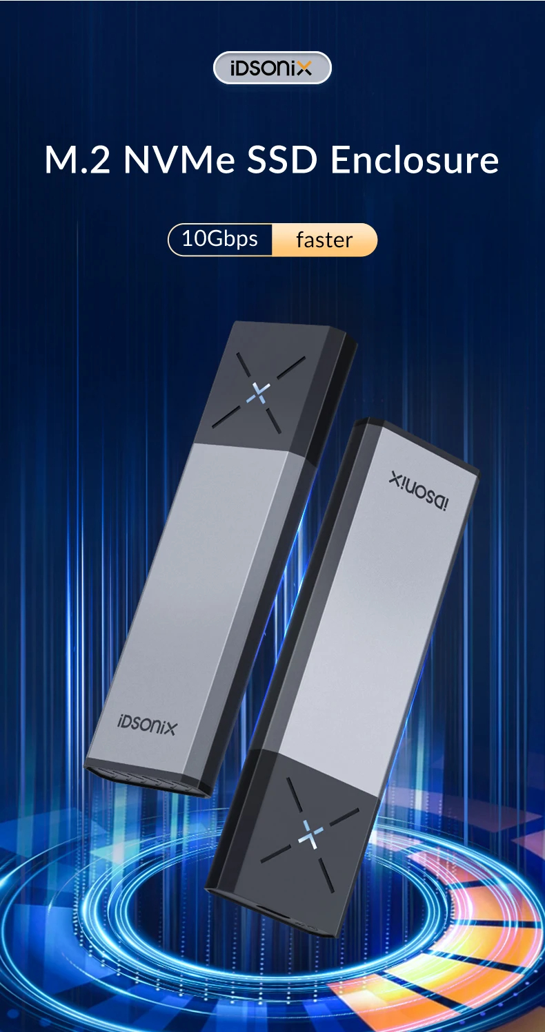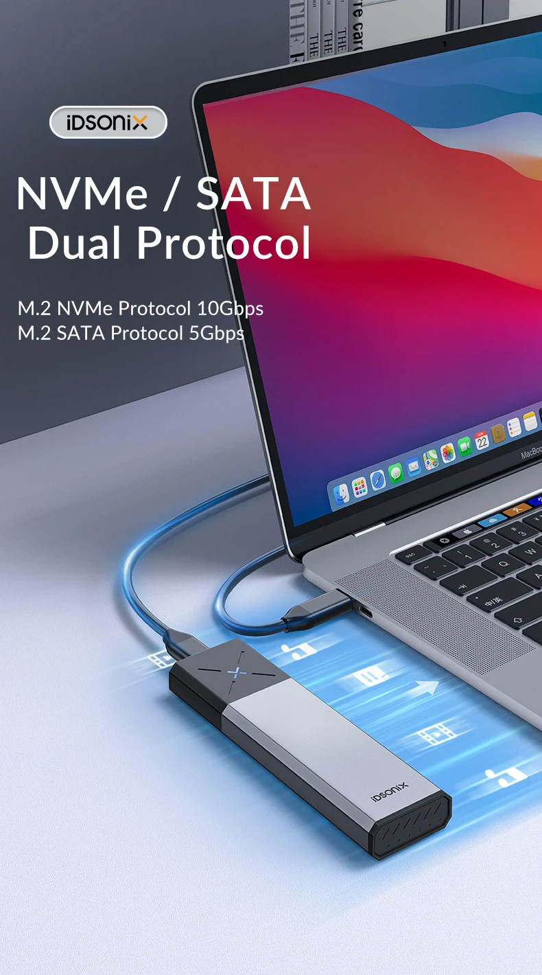 IDSONIX M.2 NVMe SATA Enclosure Dual Protocol USB 3.2 Gen 2 10Gbps 4TB Support UASP Tool-Free Heat Dissipation SSD Case