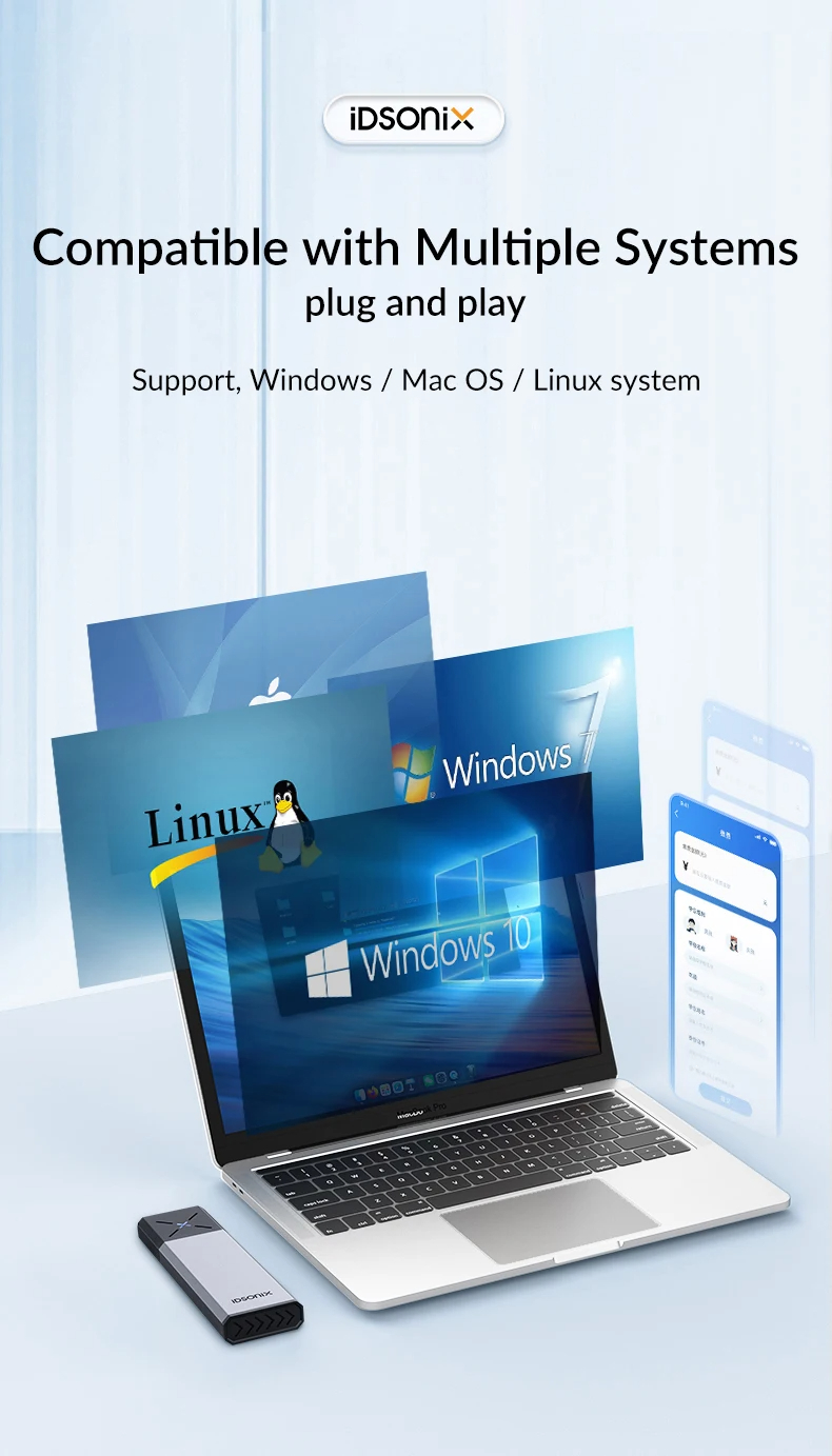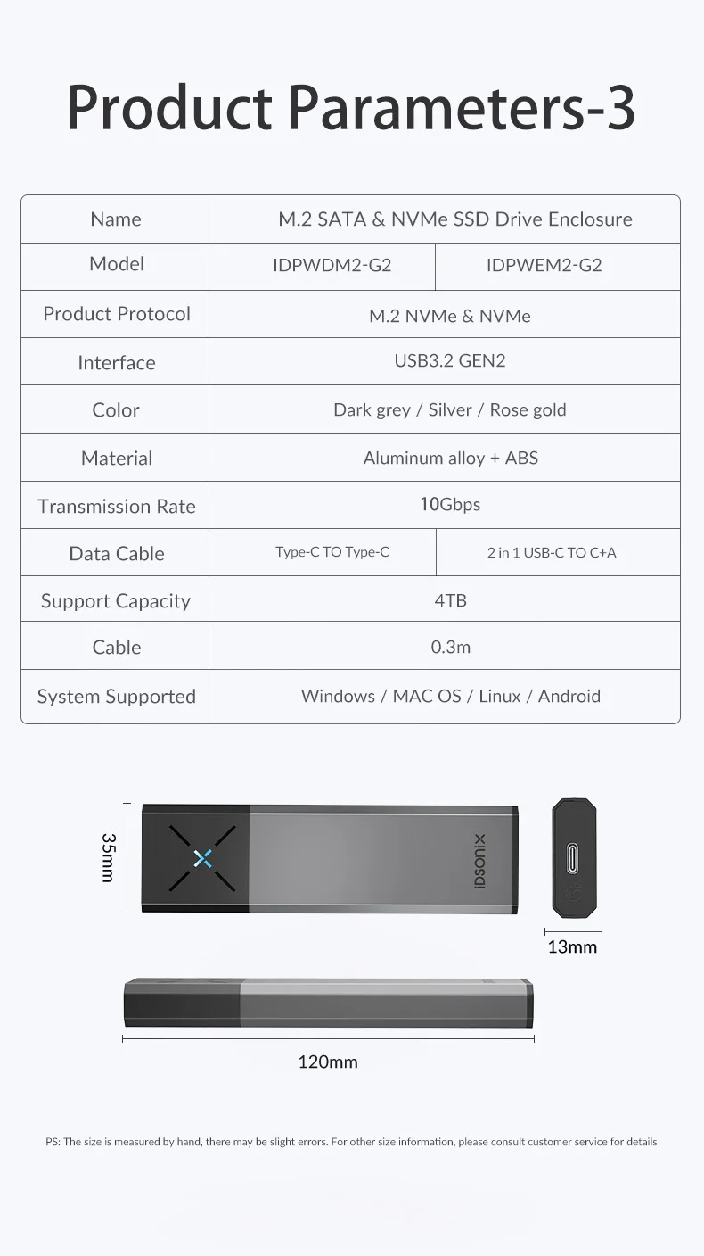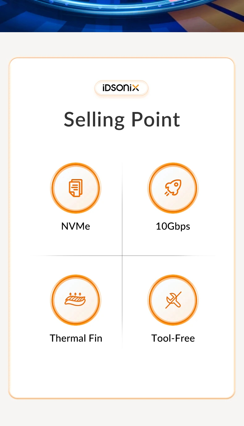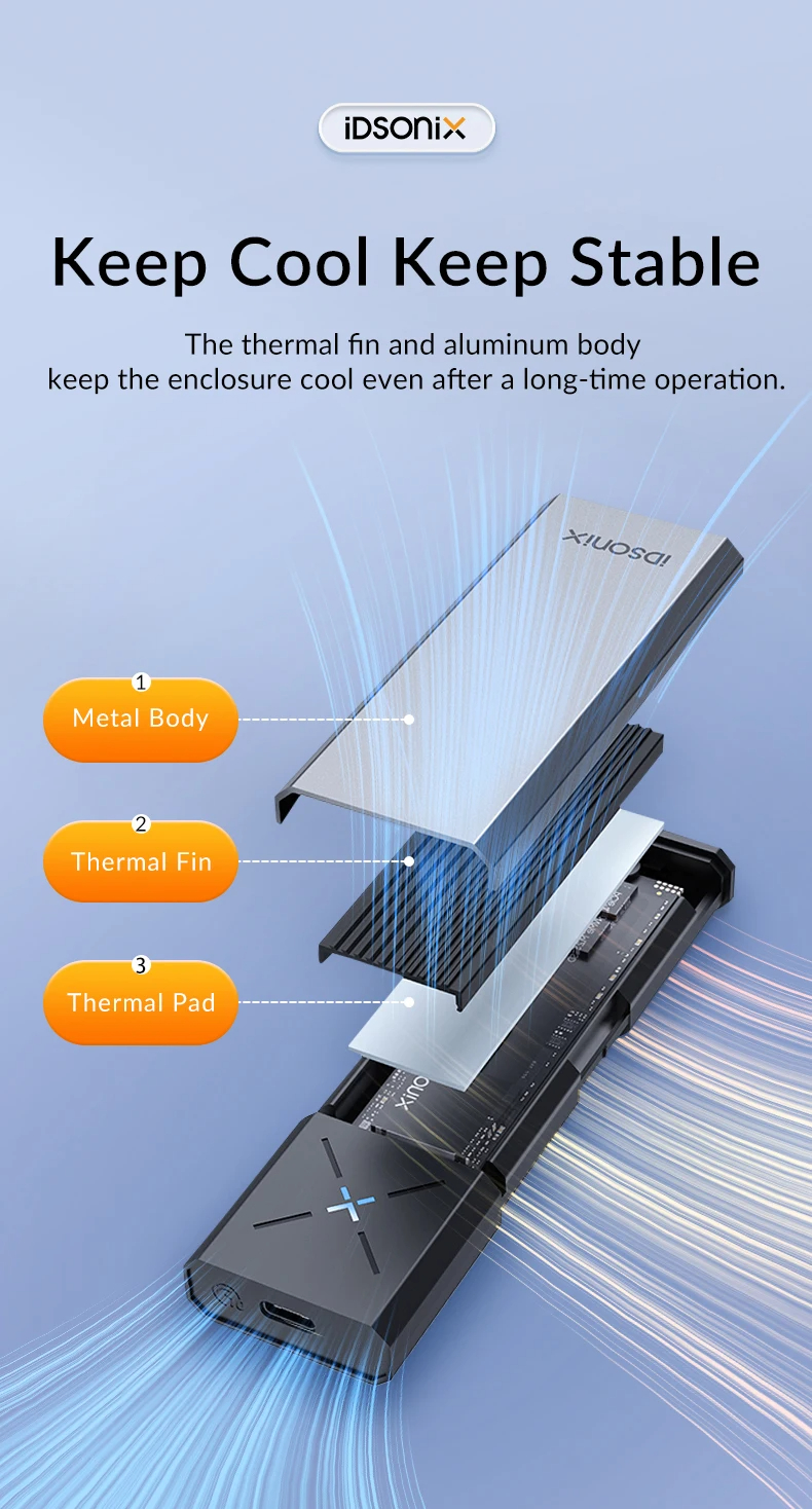IDSONIX M.2 NVMe SATA Enclosure Dual Protocol USB 3.2 Gen 2 10Gbps 4TB Support UASP Tool-Free Heat Dissipation SSD Case