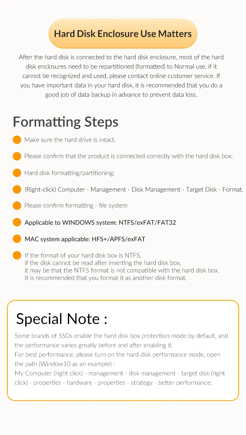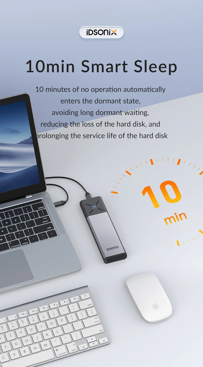 5. Smart Sleep Mode: Automatically enters sleep mode after 10 minutes of inactivity to protect the hard drive and prolong its lifespan.