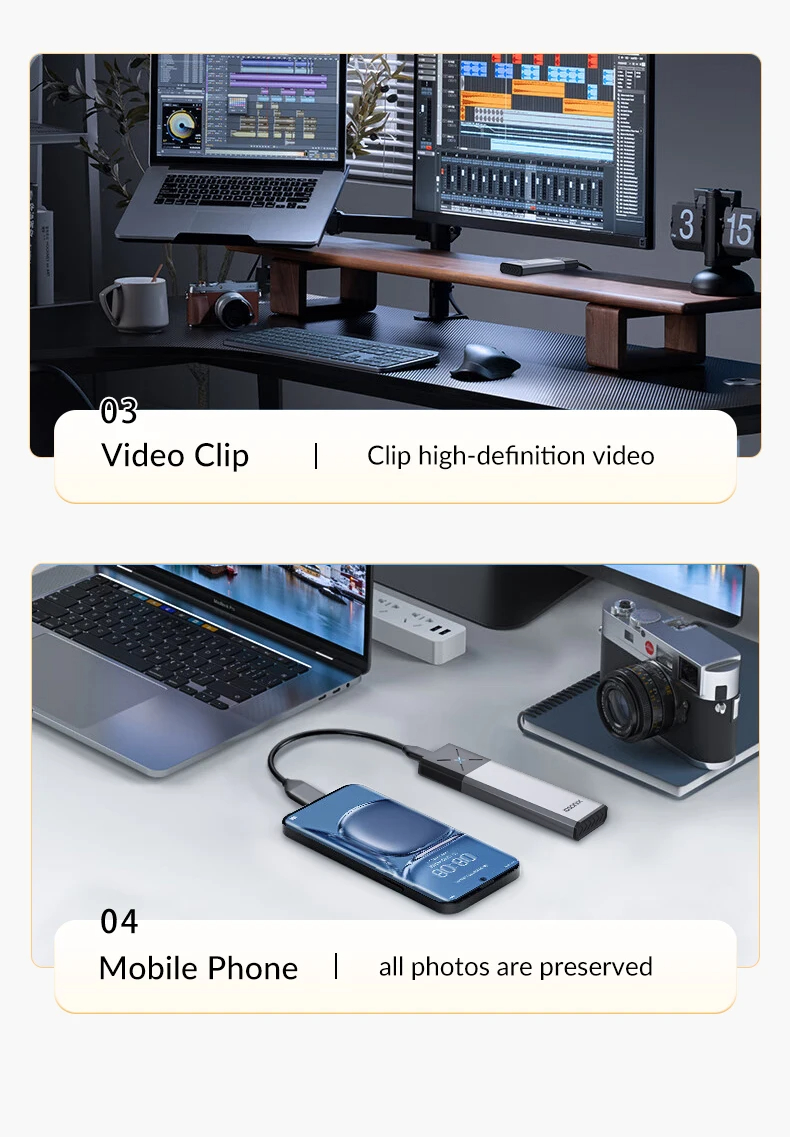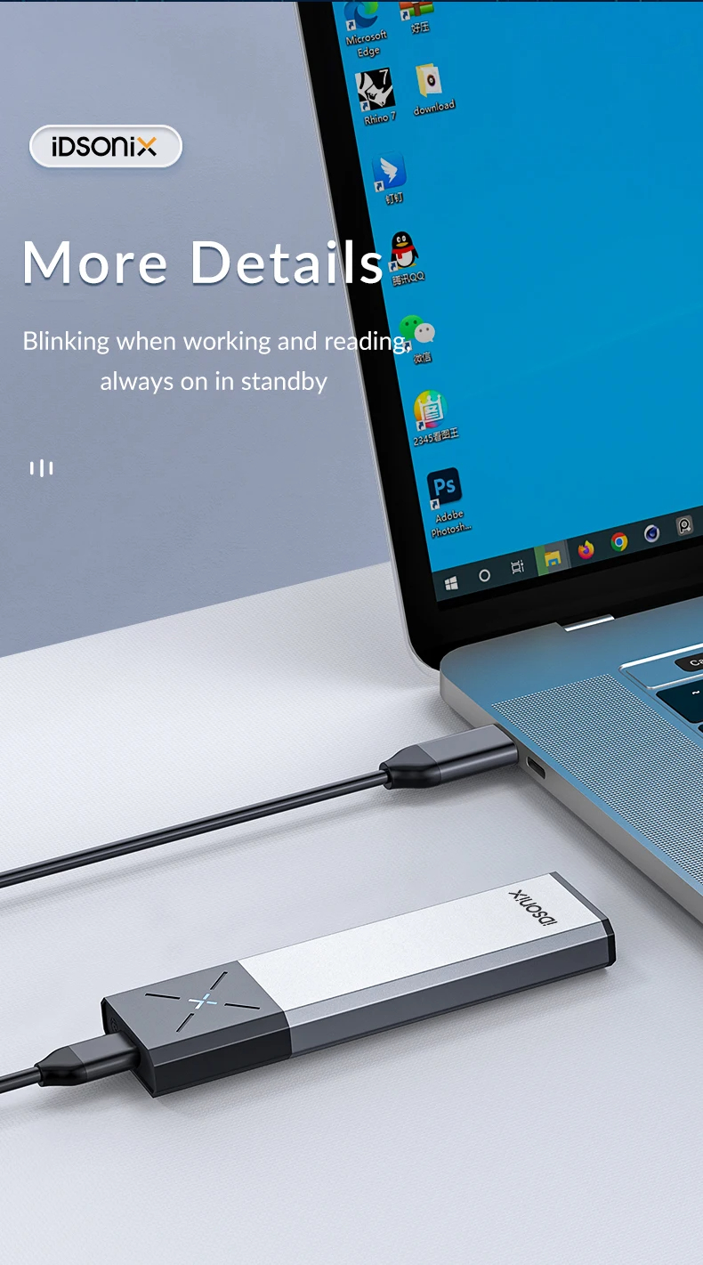 1. High-Speed Transmission: Provides up to 10Gbps transmission speed through USB 3.2 Gen 2, ensuring quick file transfers.