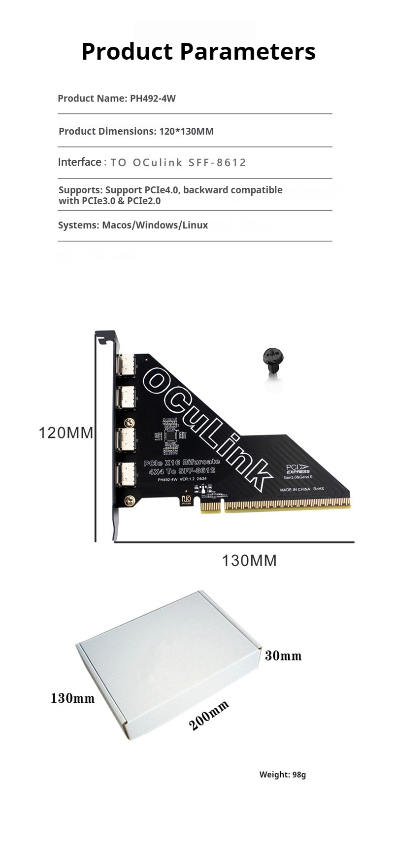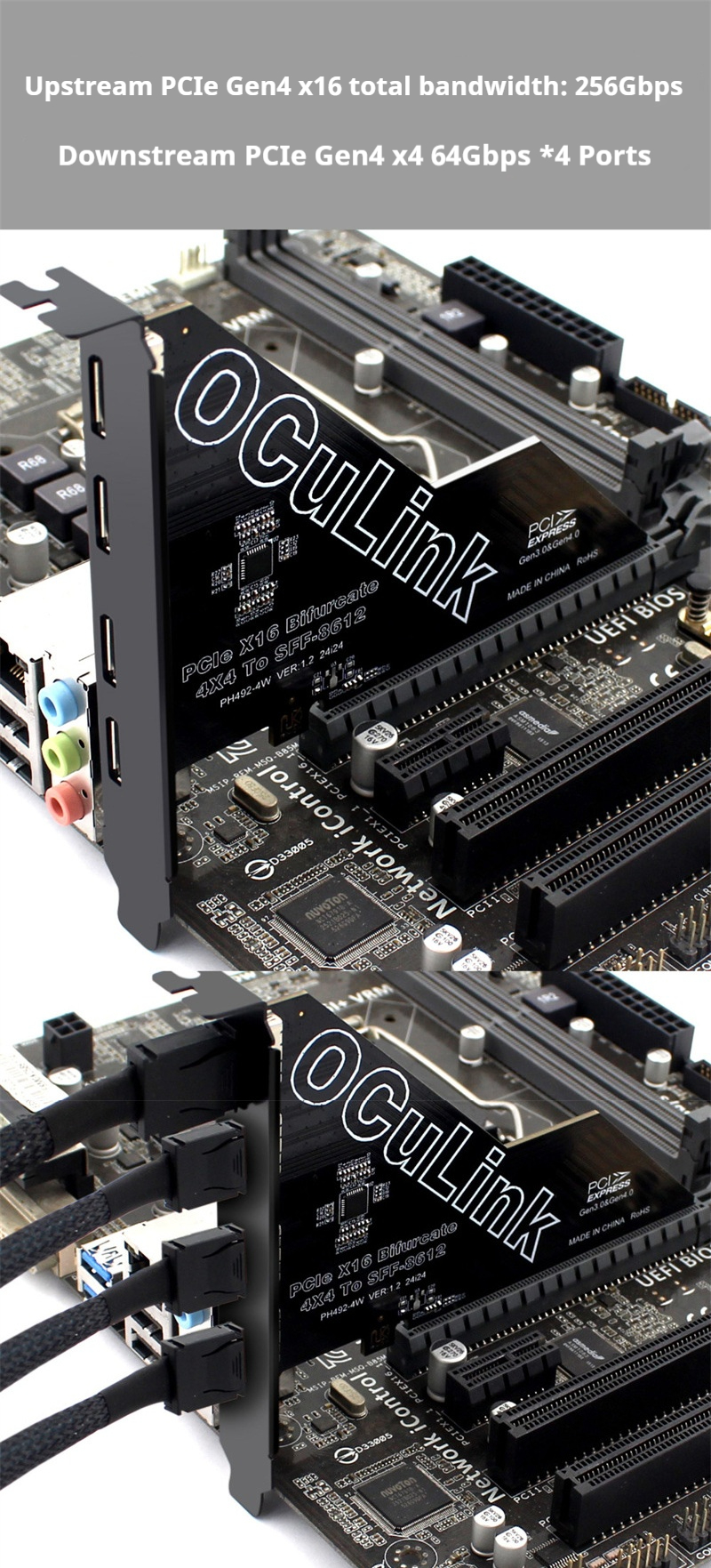 Product Name: PCIe4.0 X16 to OCulink SFF-8612 Extension Card