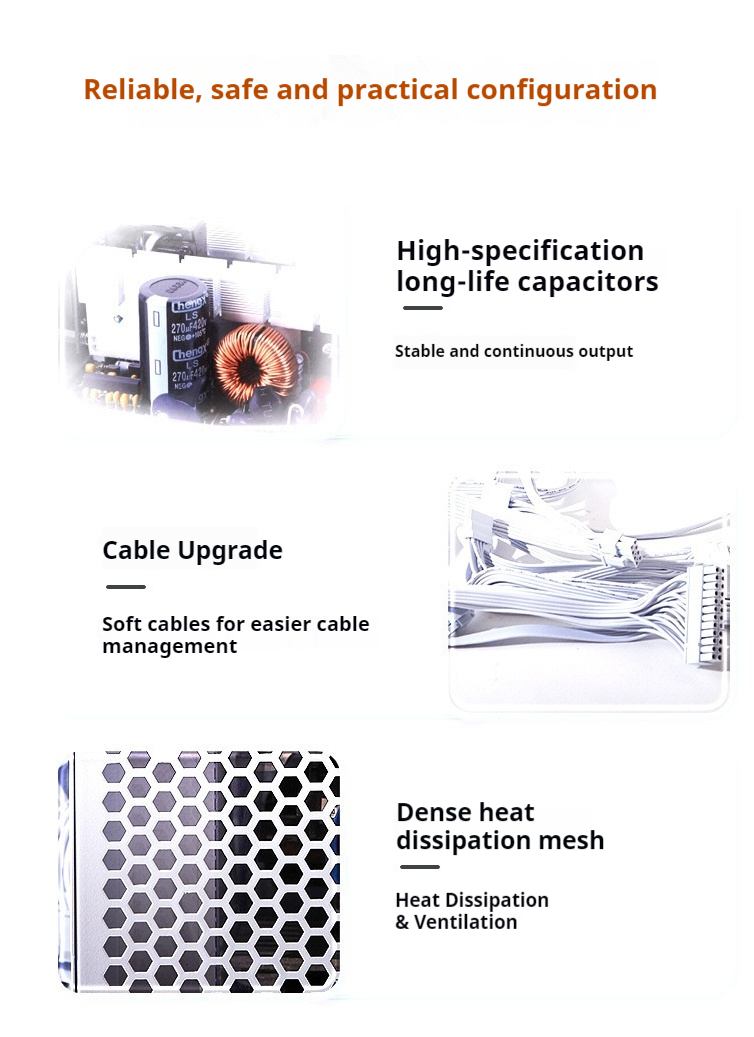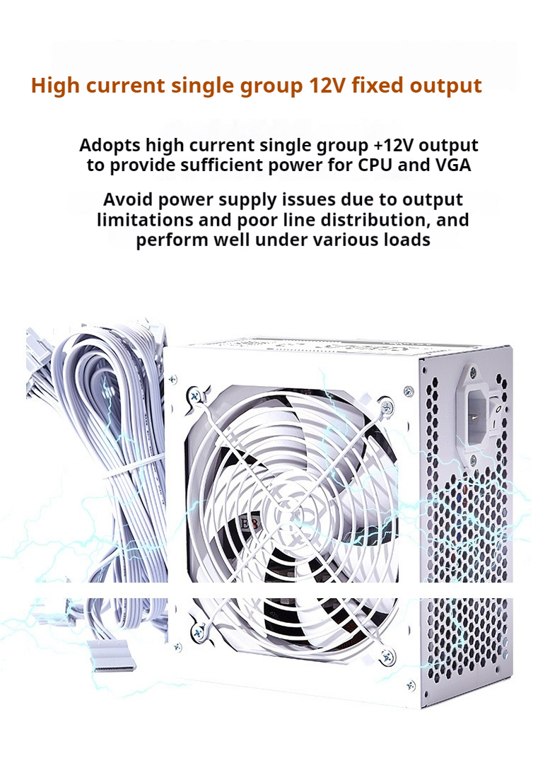1. Single Strong 12V Output: Ensures reliable power supply for both CPU and VGA systems, offering consistent performance for varying loads.
