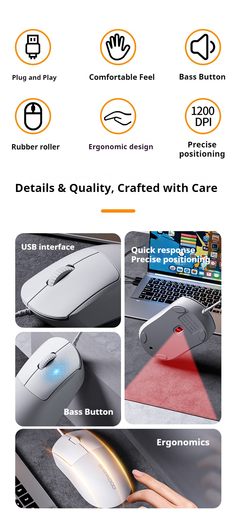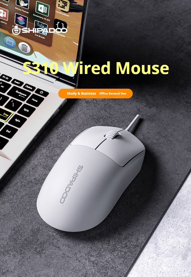 SHIPADOO S310 Wired Office Mouse 1200 DPI USB Plug and Play Silent Click Ergonomic Mice