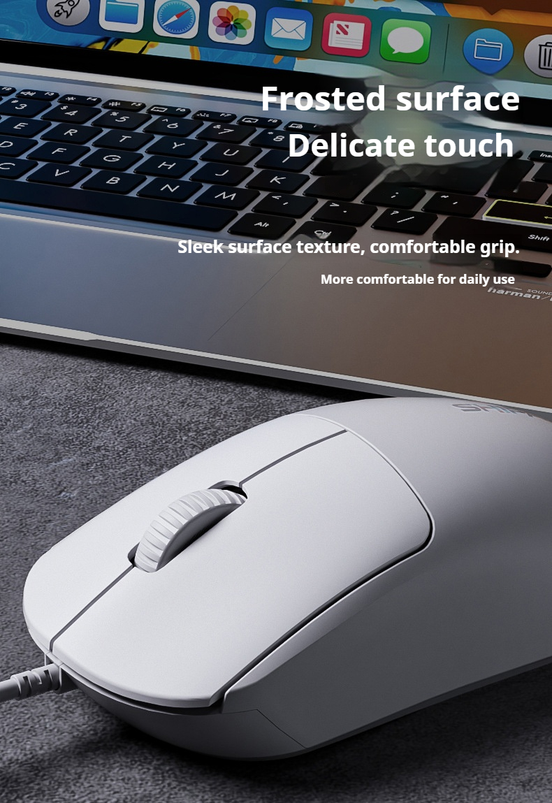 5. Textured Surface: The sandblasted finish gives the mouse a refined touch and prevents slipping.