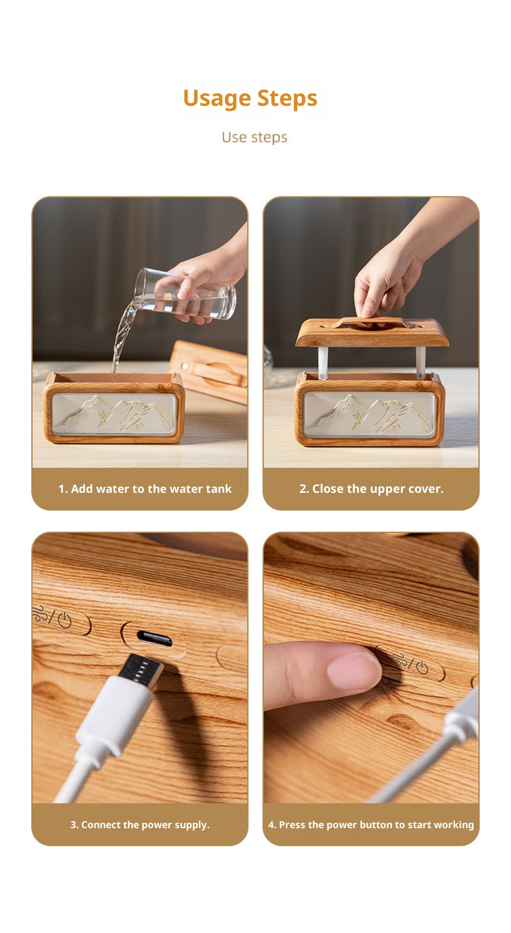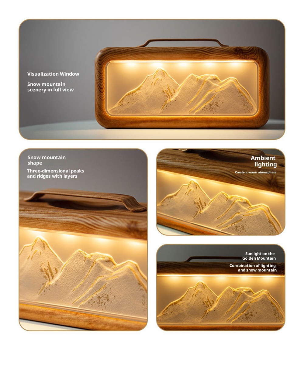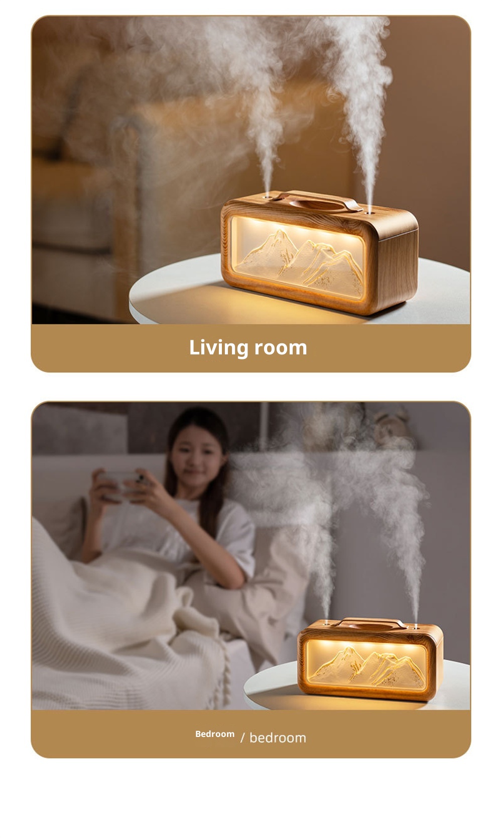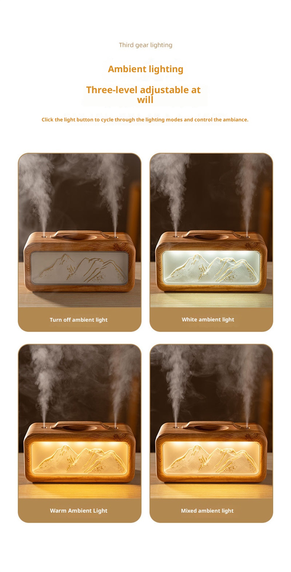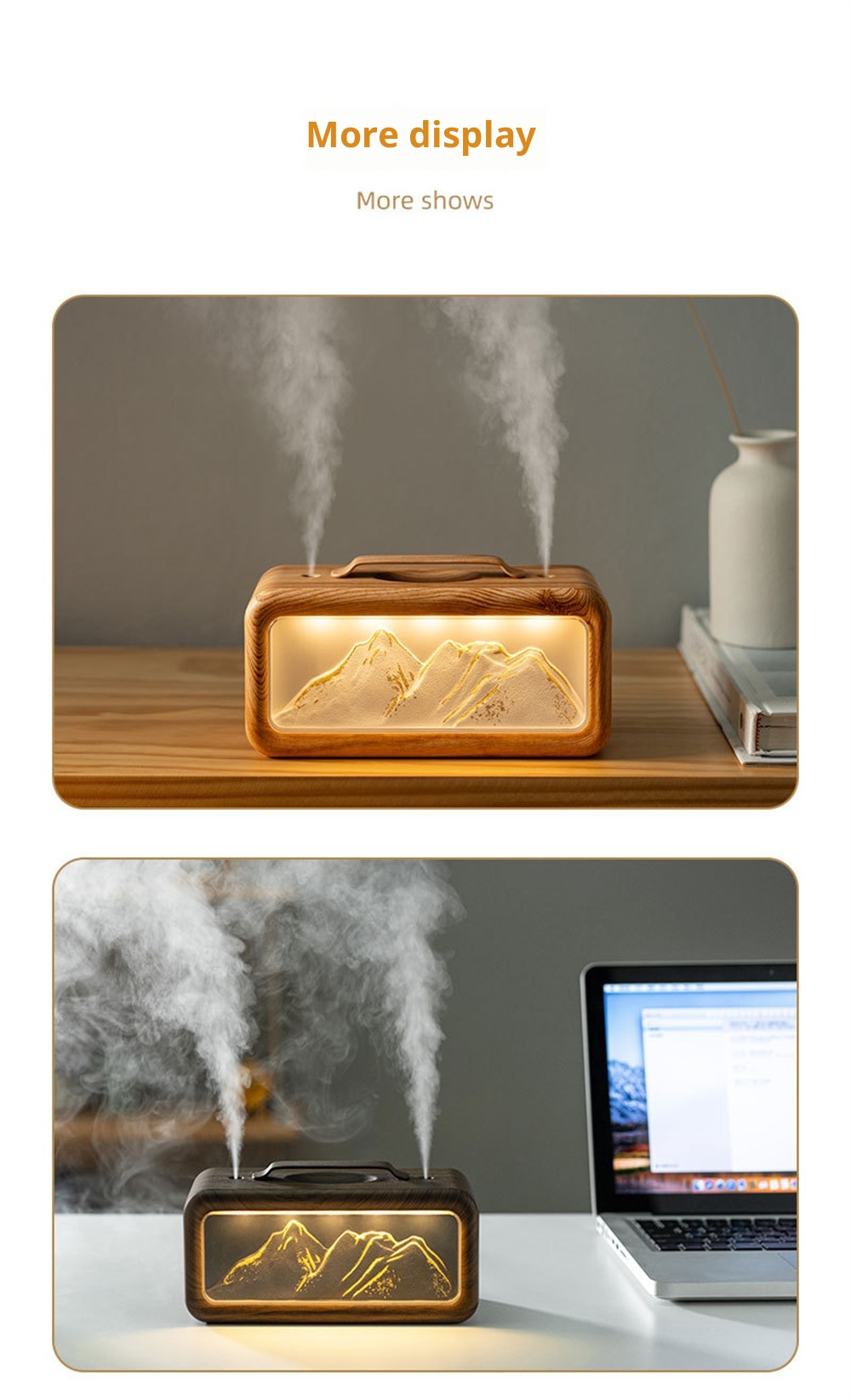 1.Unique Snow Mountain AestheticEnjoy a touch of nature-inspired elegance with its modern Modern Glacier Design, perfectly suited for contemporary home or office decor.2.High-Efficiency 600mL CapacityFeatures a large-volume water tank for extended operation, providing long-lasting humidification without frequent refills.3.Adjustable Dual Fog Modes & Triple LightingCustomize your comfort with two mist output levels and three soft lighting options to create the ideal ambiance day or night.4.Quiet & Powerful Ultrasonic OperationEnjoy whisper-quiet humidification with advanced ultrasonic technology that delivers a steady mist while maintaining a peaceful environment.5.USB Powered for Convenient Use Anywhere