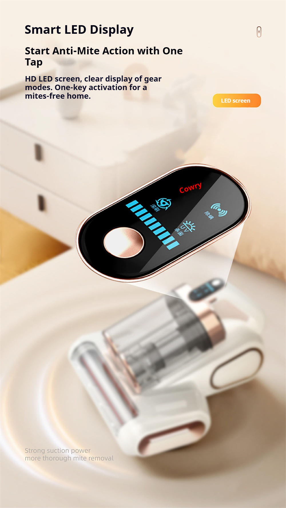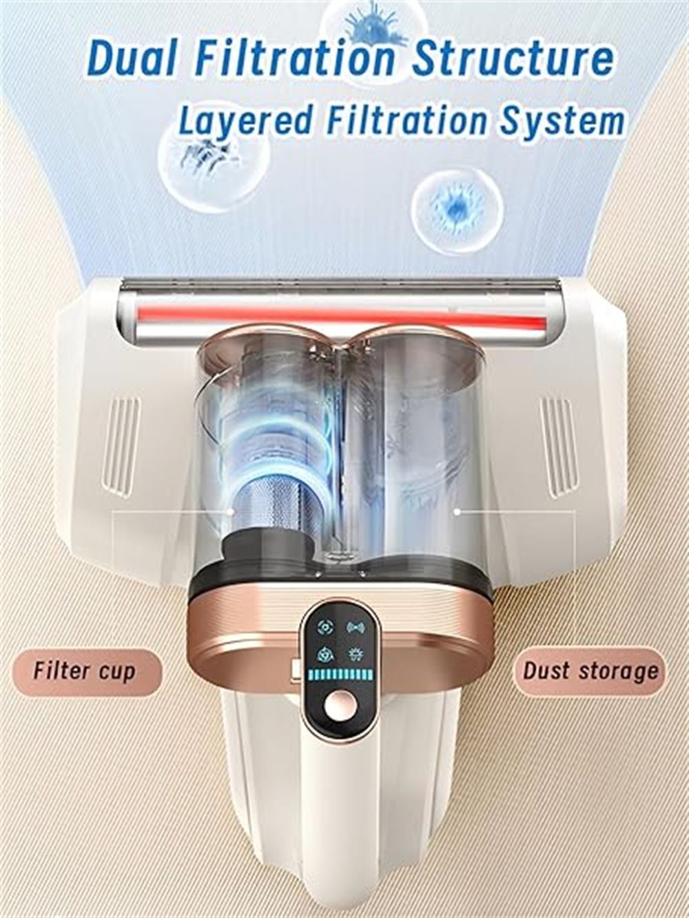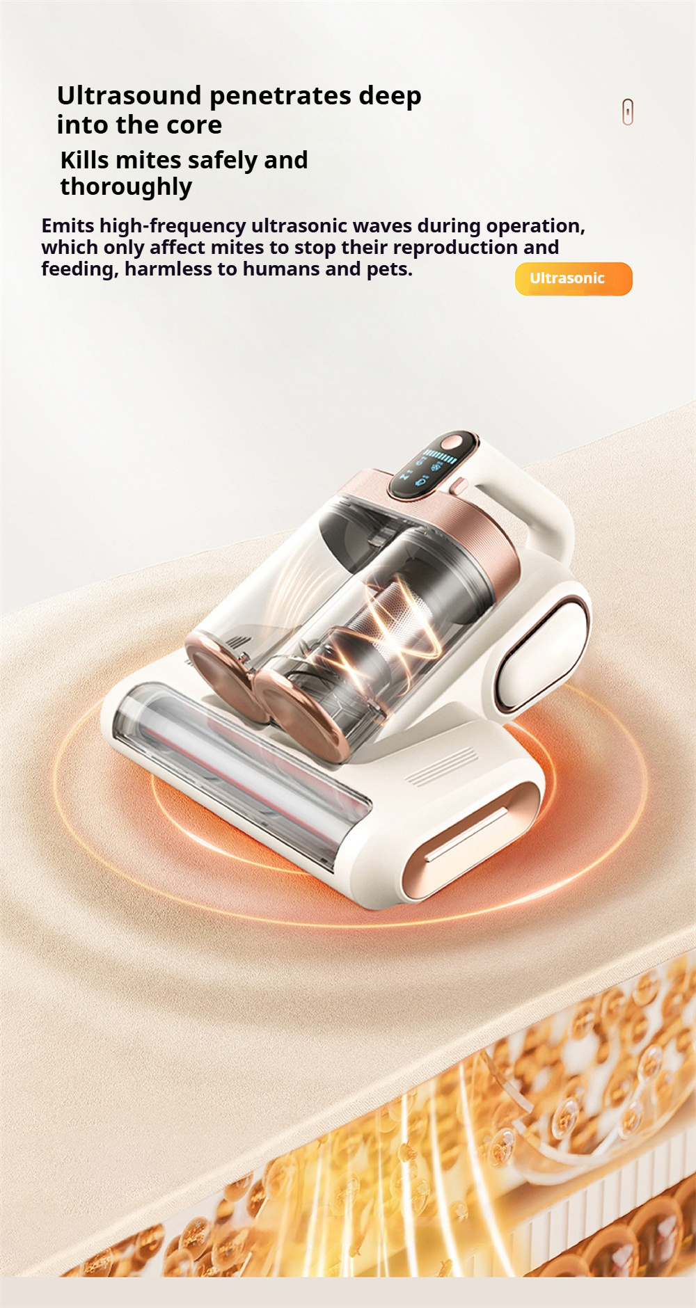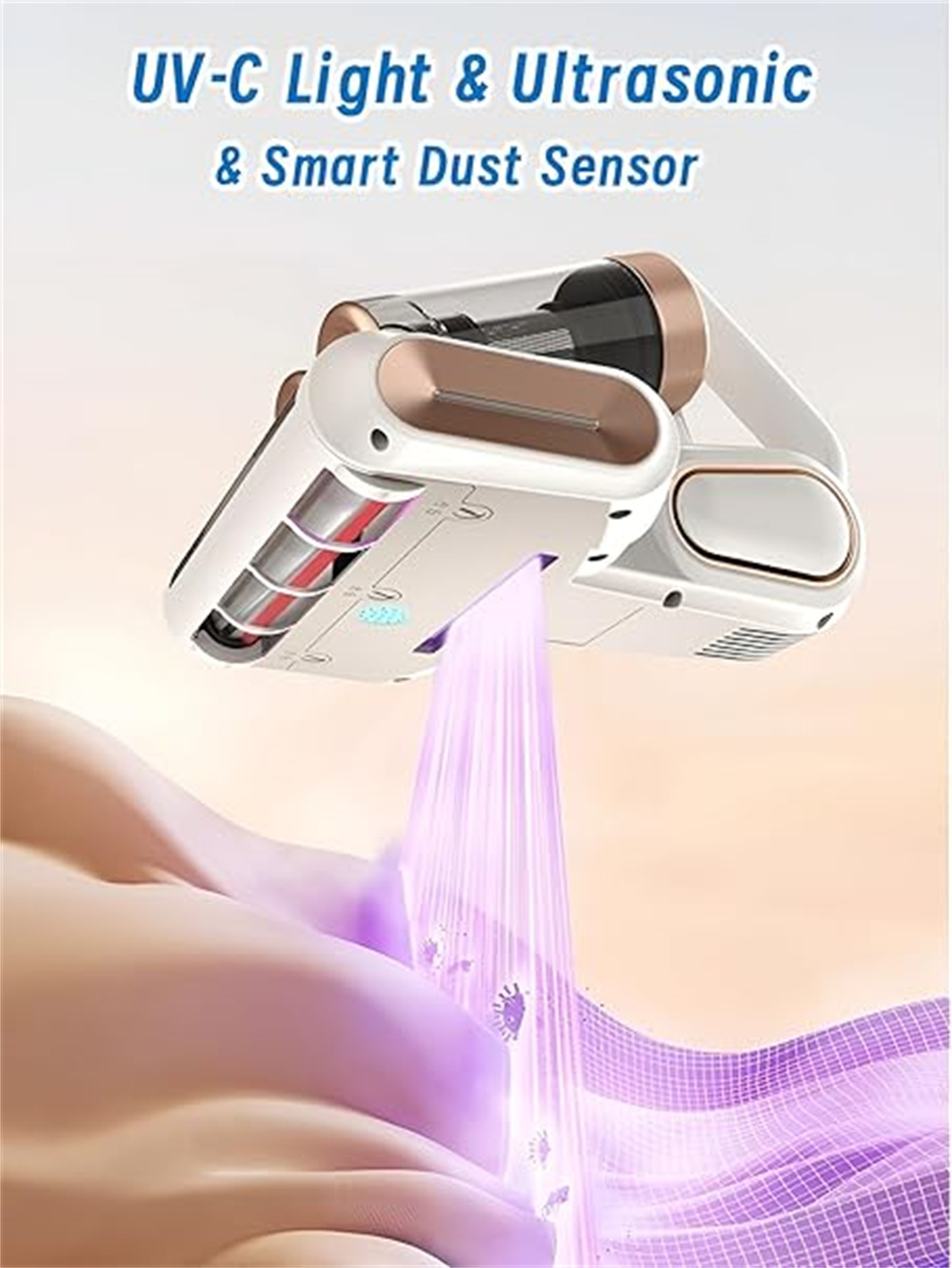 2.【Built-In Uv-C Light For Enhanced Cleaning】The Bed Vacuum Cleaner Integrates 253.7Nm Uv-C Light Functionality To Support A Thorough Surface Clean. The Light Activates Only When In Contact With Surfaces And Turns Off When Lifted, Offering Added Peace Of Mind During Use.