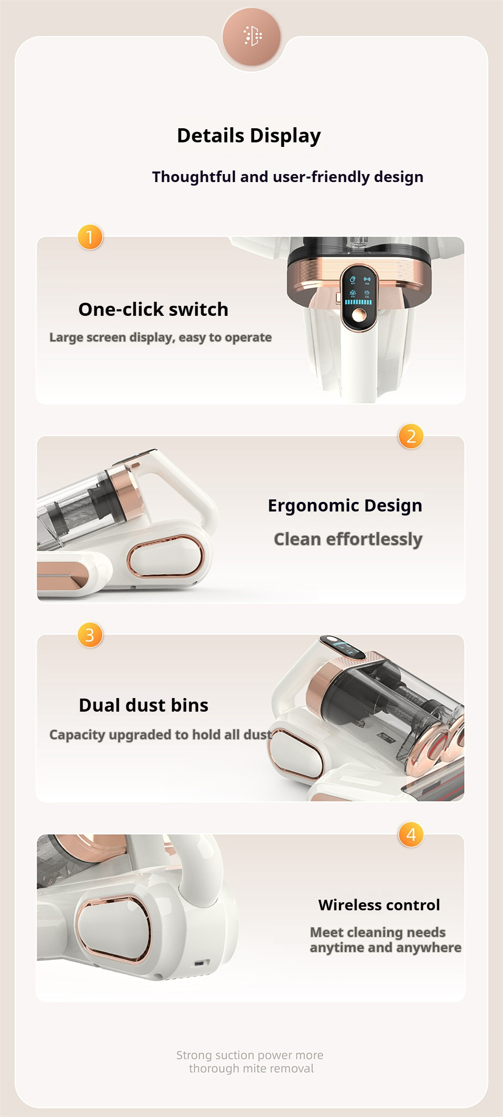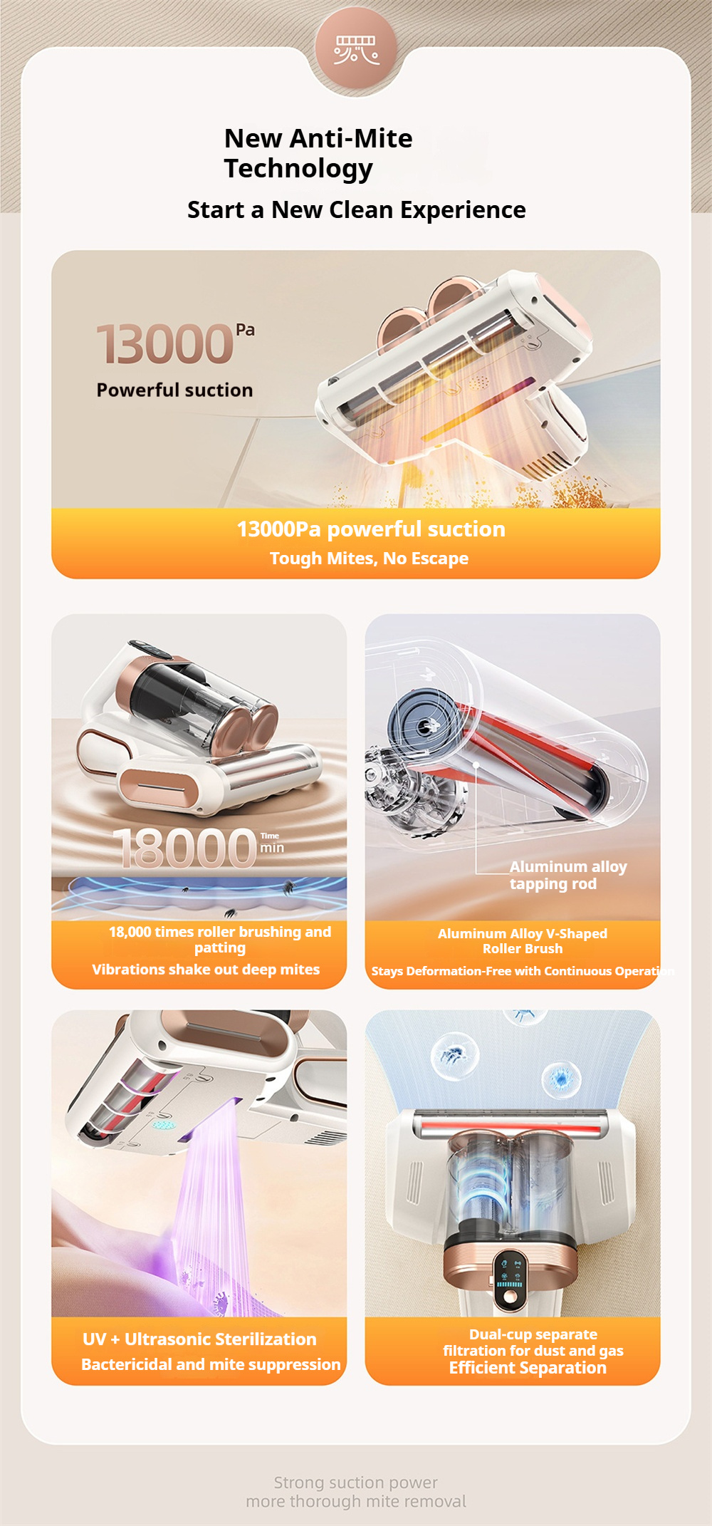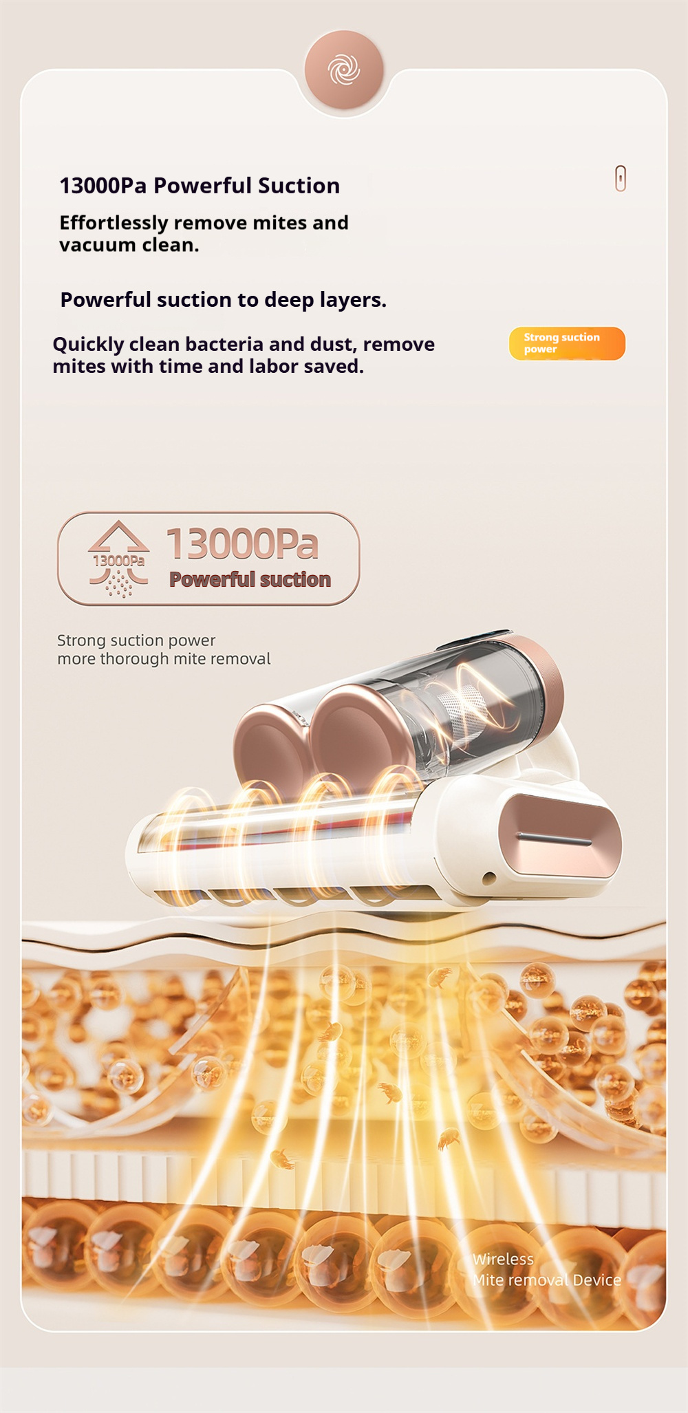 1.【 Deep Cleaning Power With Strong Suction & High-Speed Roller】This Mattr Vacuum Cleaner Combines 13,000Pa Strong Suction With A 30,000 Rpm High-Speed Roller Brush To Efficiently Lift Dust, Particles, And Debris Embedded Deep Within Mattresses, Sofas, And Cushions—Delivering Powerful Agitation And Thorough Deep Cleaning With Minimal Effort.