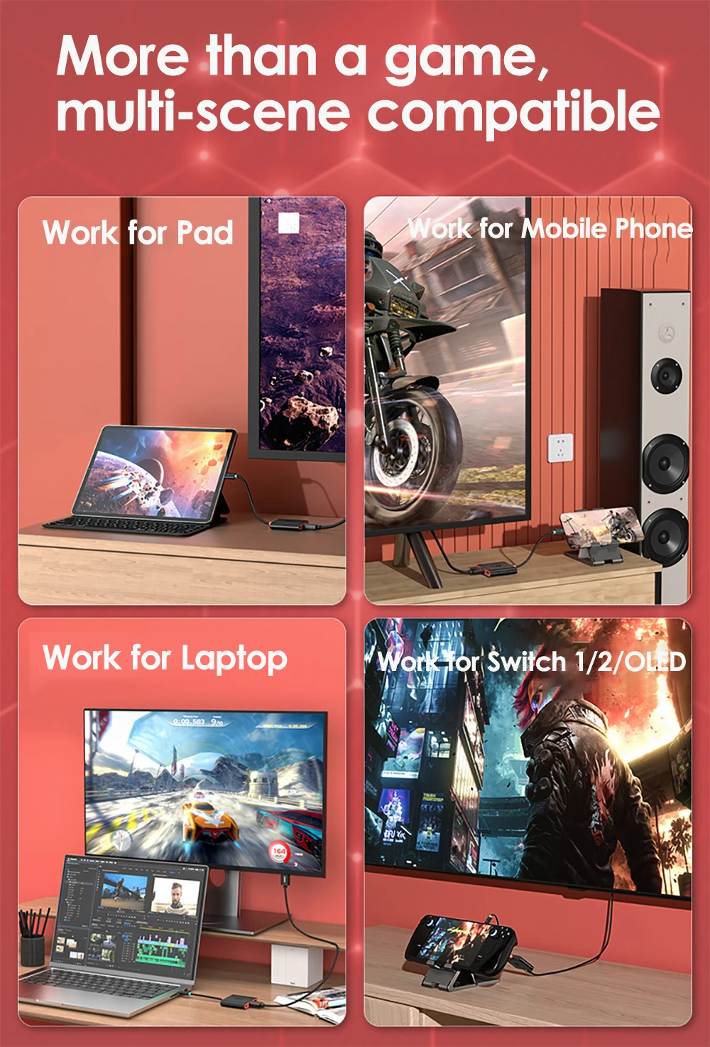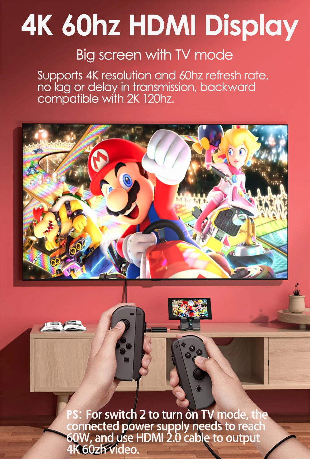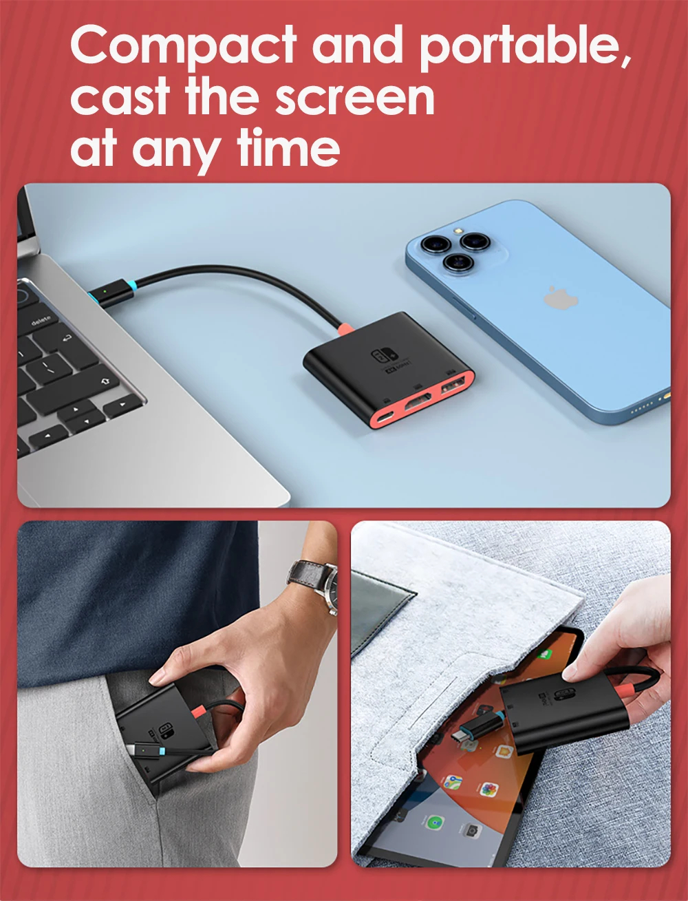 2. Multi-Device Connectivity: Easily connect NS, laptops, mobile phones, tablets, projectors, TVs, and more.