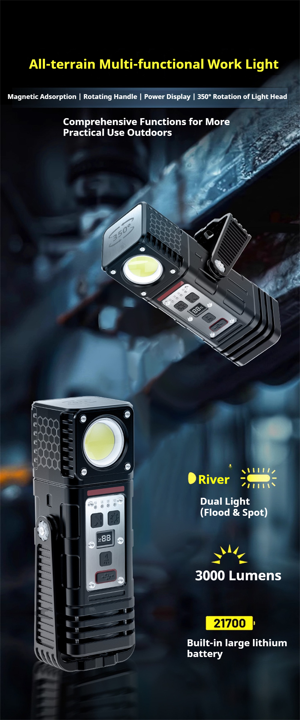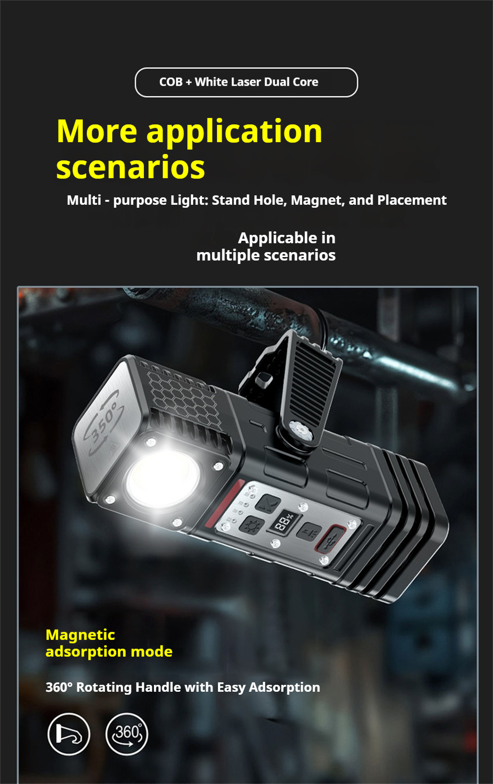 4. 360-degree swivel design allows versatile lighting angles.