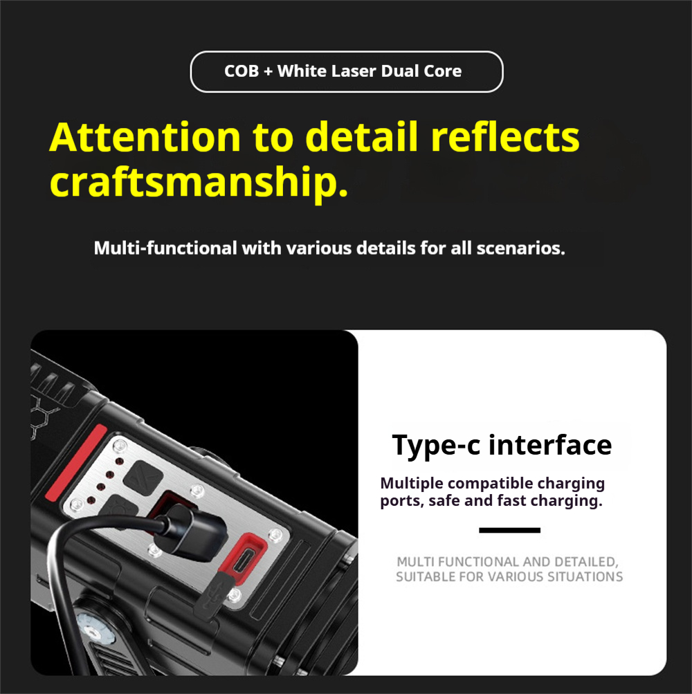 Bikight 3000LM 800M COB Flashlight Ajustable Angle USB Rechargeable Powerful Lamp with 8000mAh 21700 Battery Outdoors Portable Magnet Mini Work Light For Hiking Camping Working