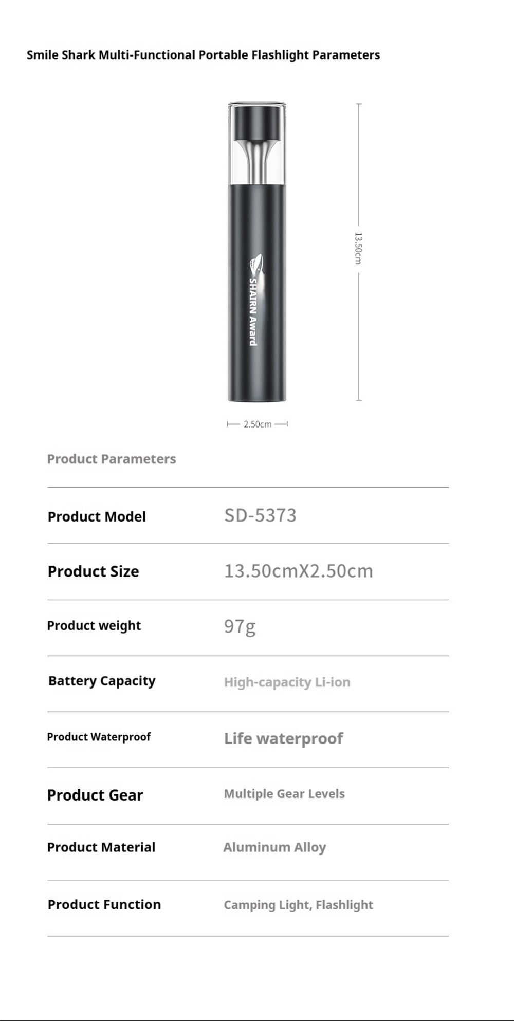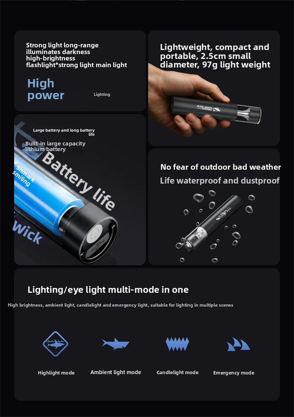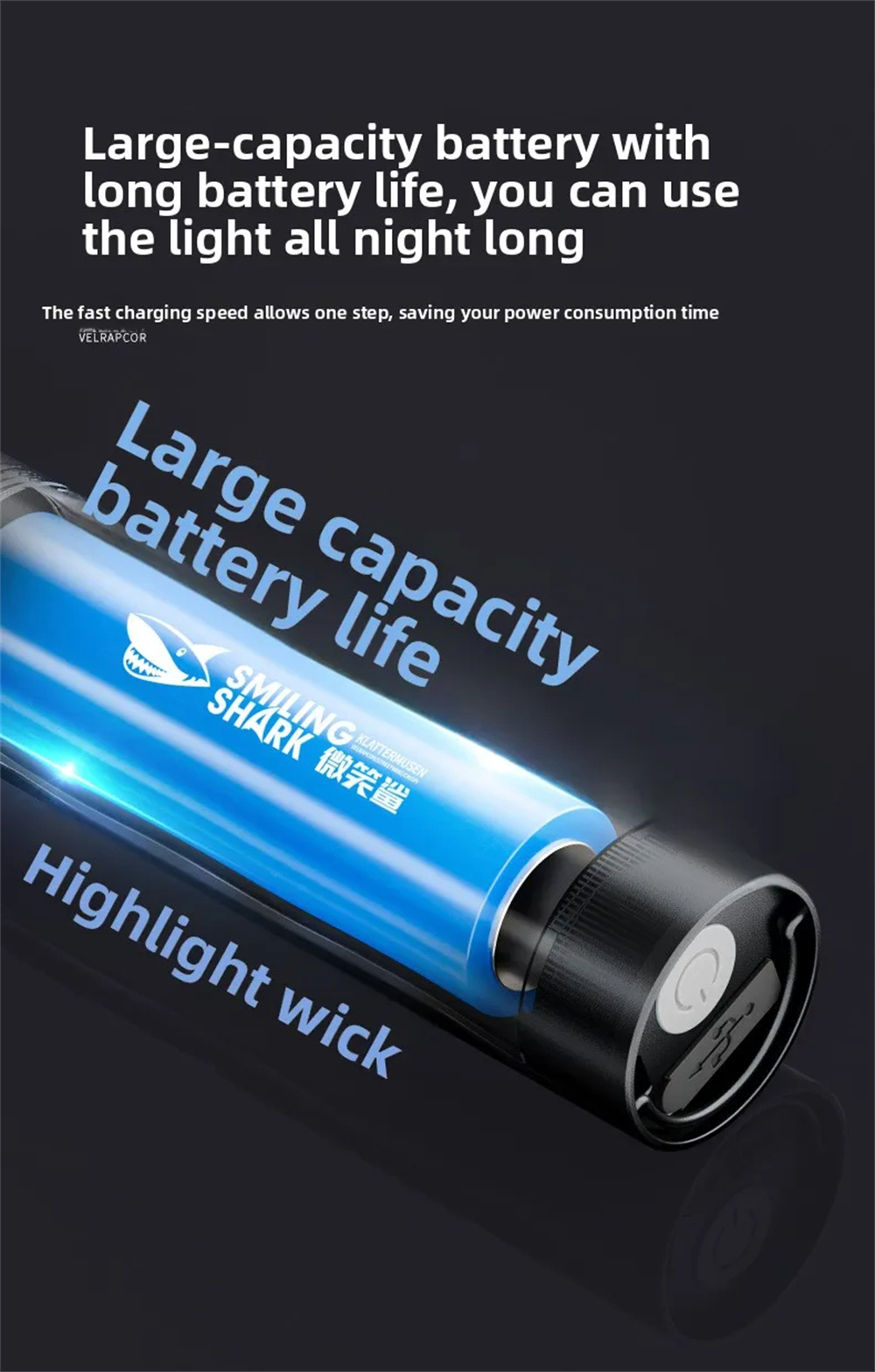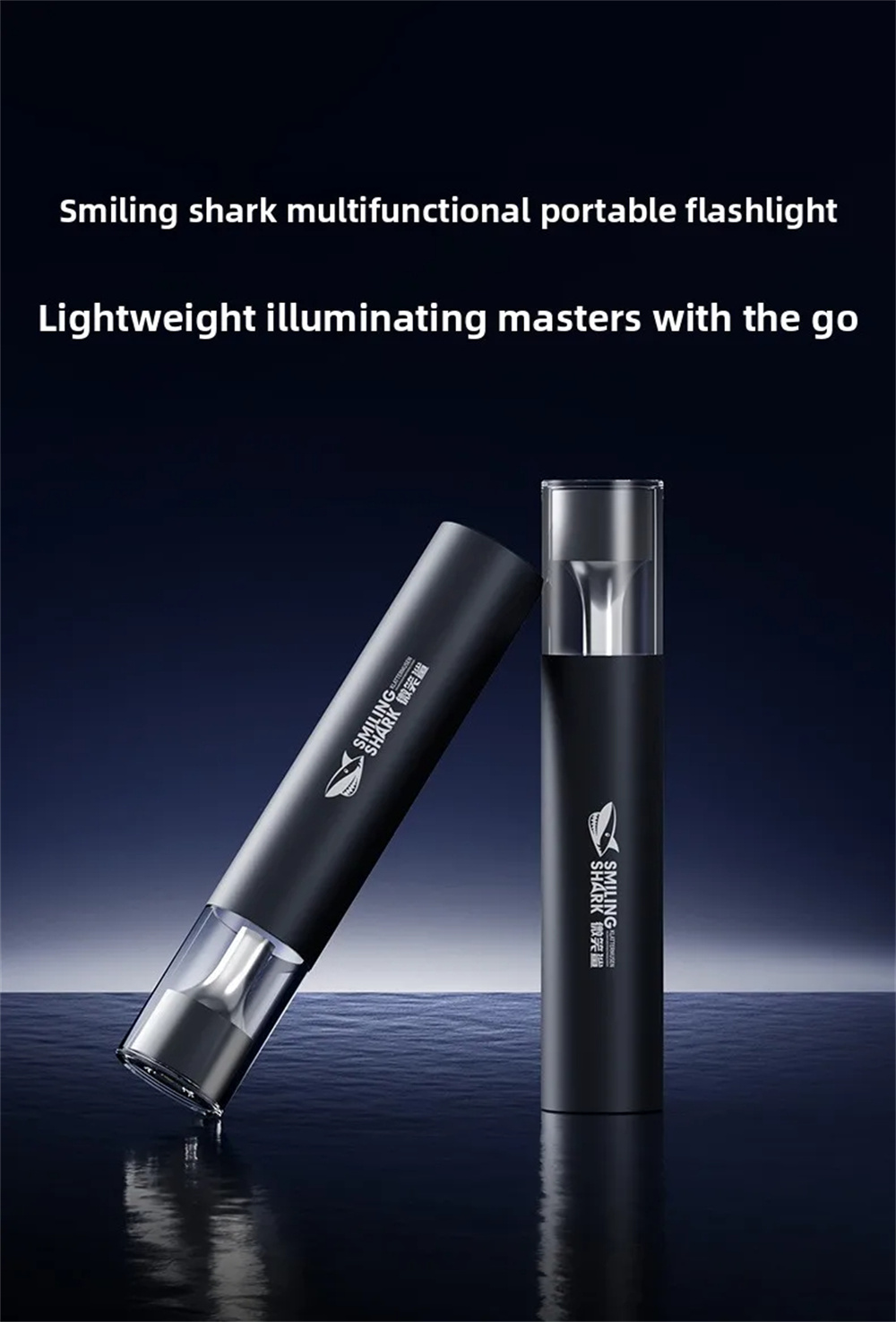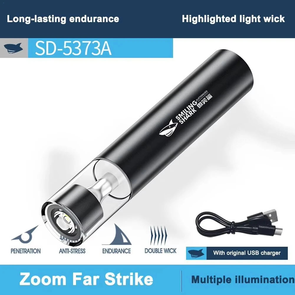 Smiling Shark 2in1 Strong Flashlight Multi-color Mood Light USB Rechargeable Built in Battery Multi Functional LED Torch, Portable For Outdoor Night Riding Camping Fishing Walking