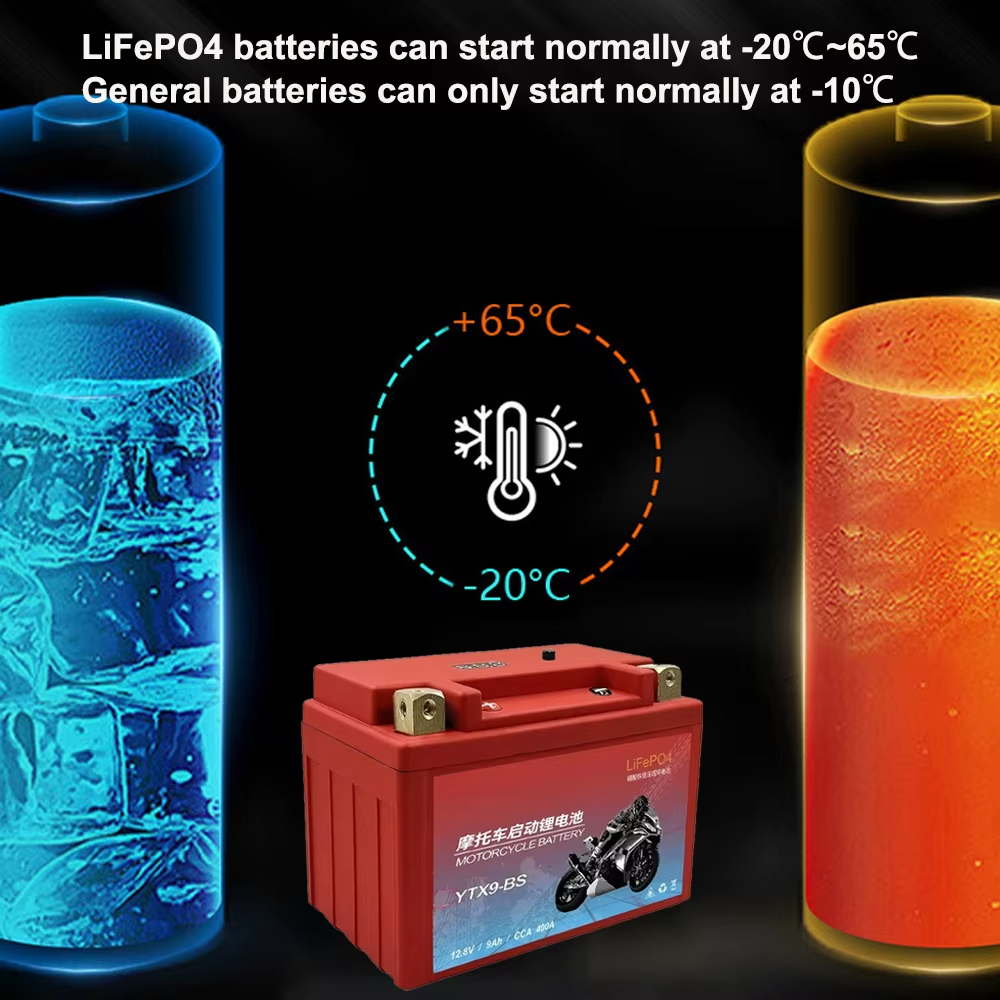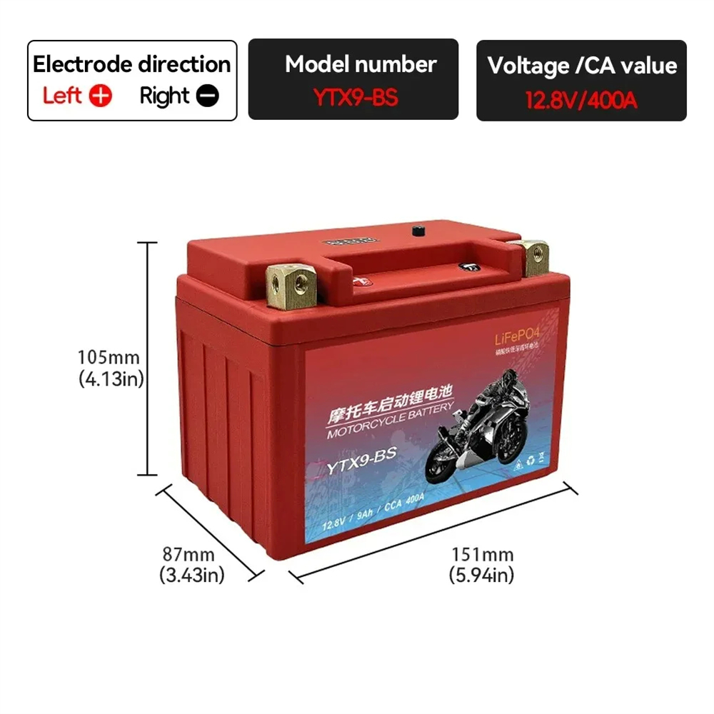 JSDSOLAR YTX9-BS 12.8V 9Ah Motorcycle LiFePO4 Battery 400A CCA Built-in BMS Lithium Battery