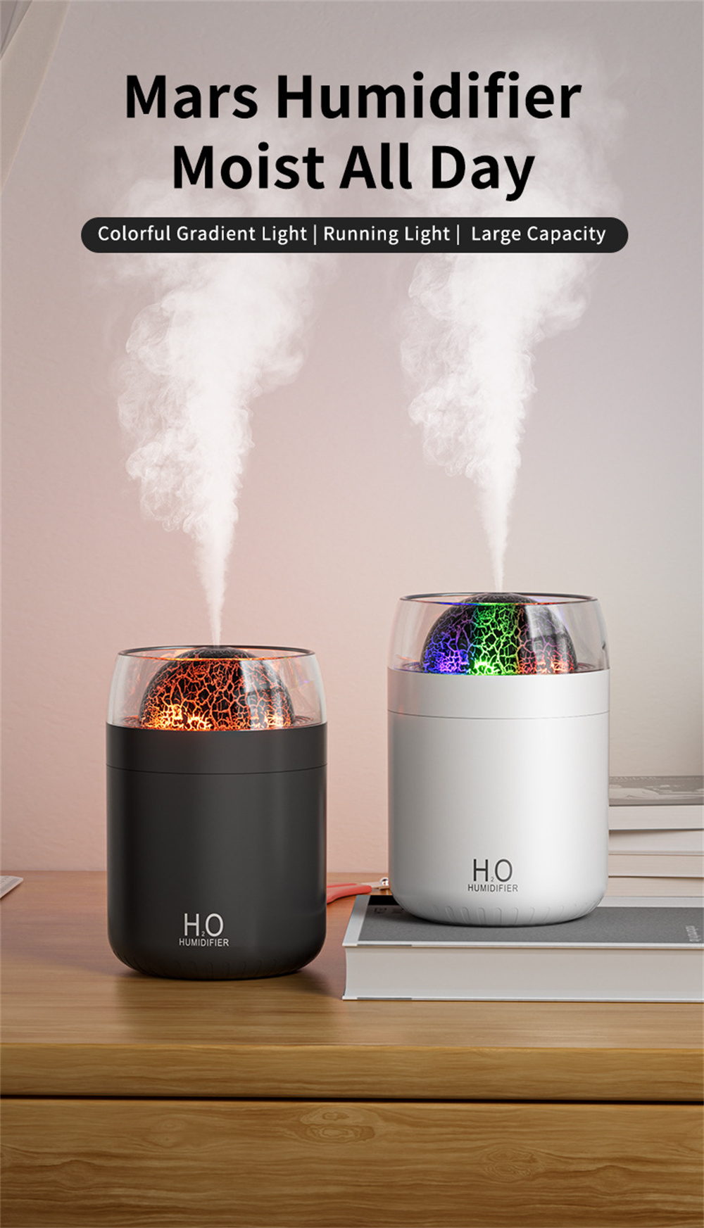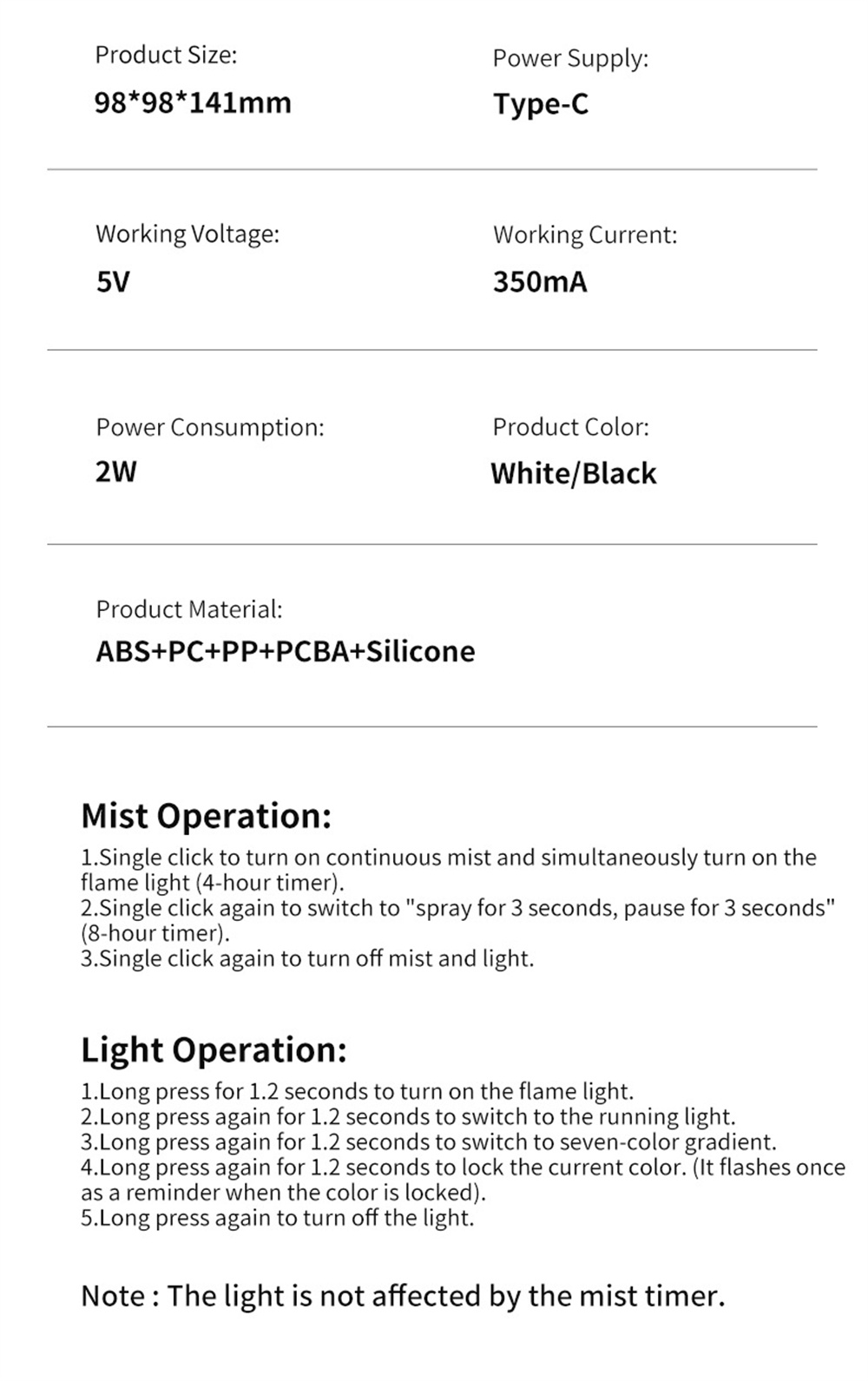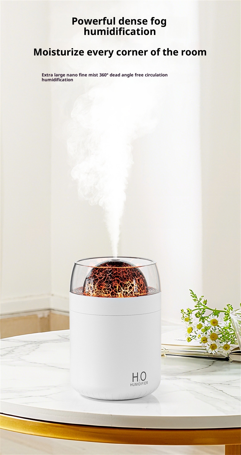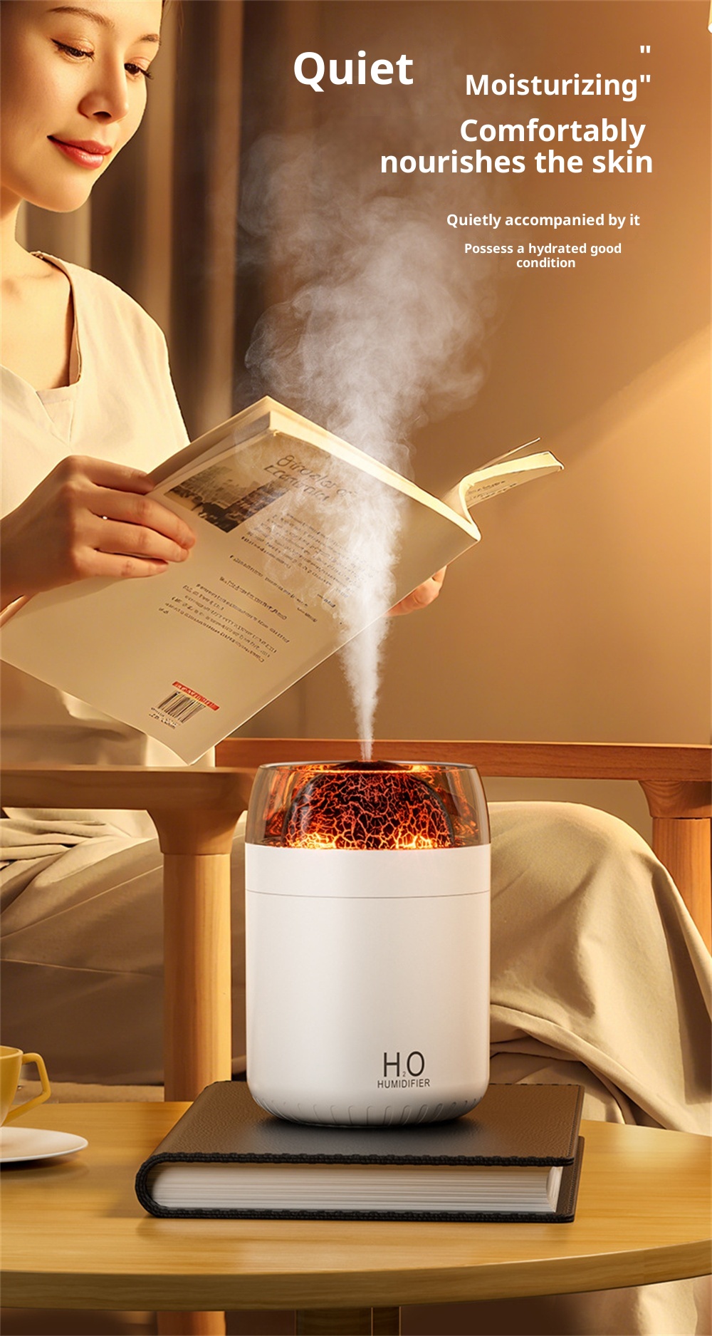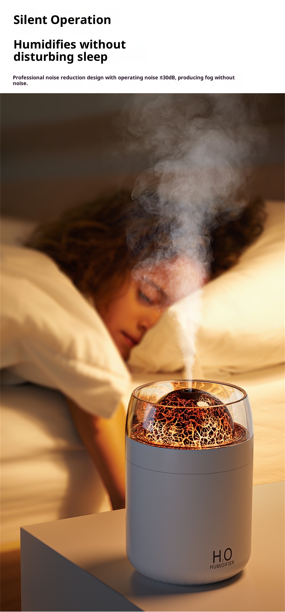 3.Night Light Feature: Equipped with an ambient night light, it creates a calming environment, it fits for nighttime use or creating a relaxing atmosphere in any space.
