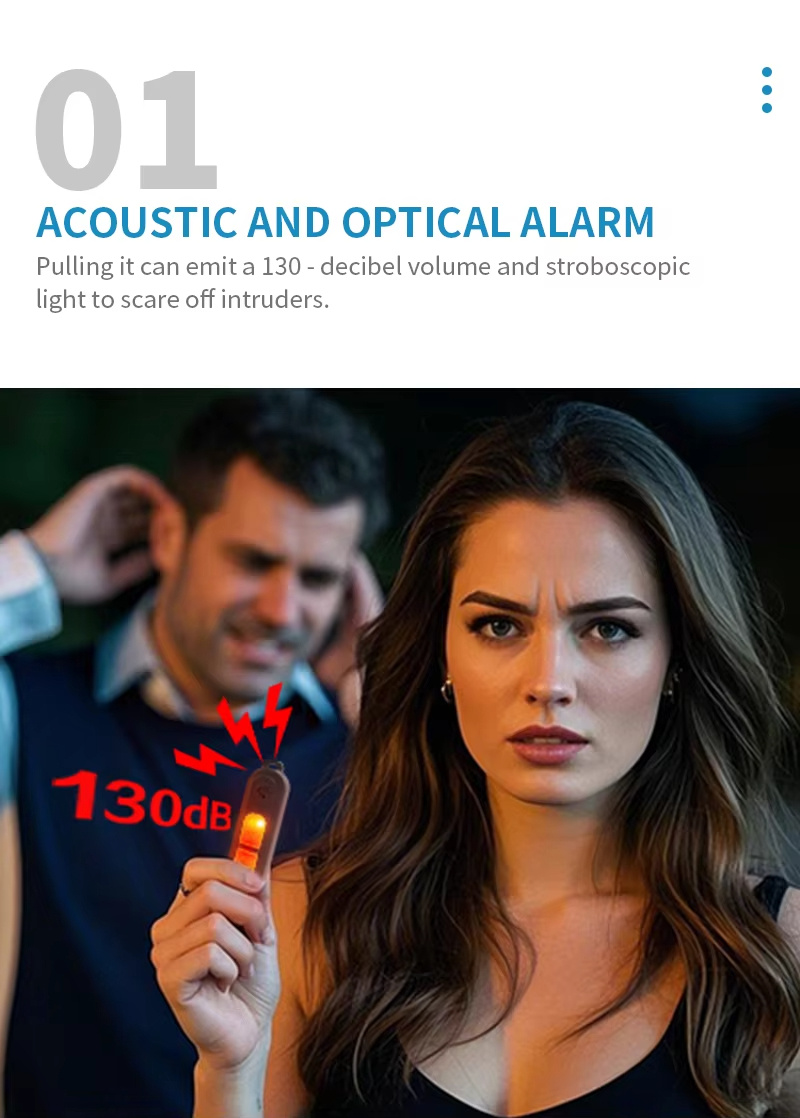 1. Acoustic and Light Alarm System: Emits a loud 130dB volume and flashes stroboscopic light to deter intruders effectively.2. LED Lighting Modes: Offers two lighting options—constant illumination or flashing lights for different scenarios.