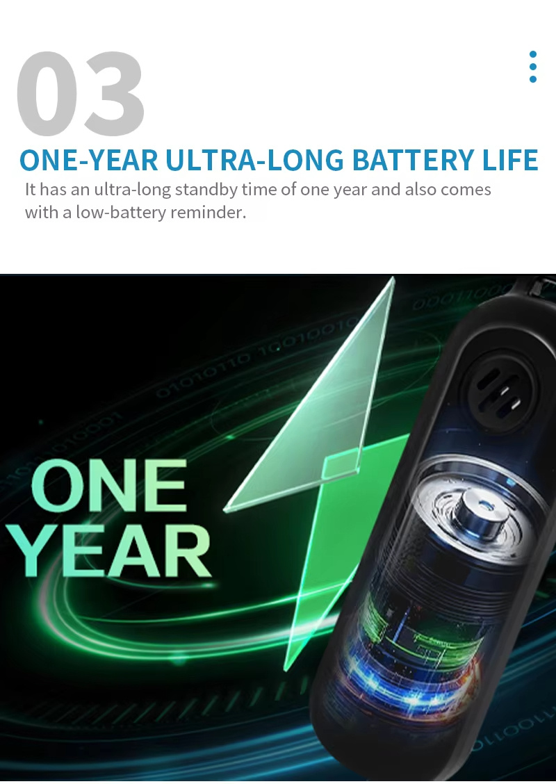 3. Long Battery Life: Designed with an extended one-year standby duration and a low-battery reminder feature.
