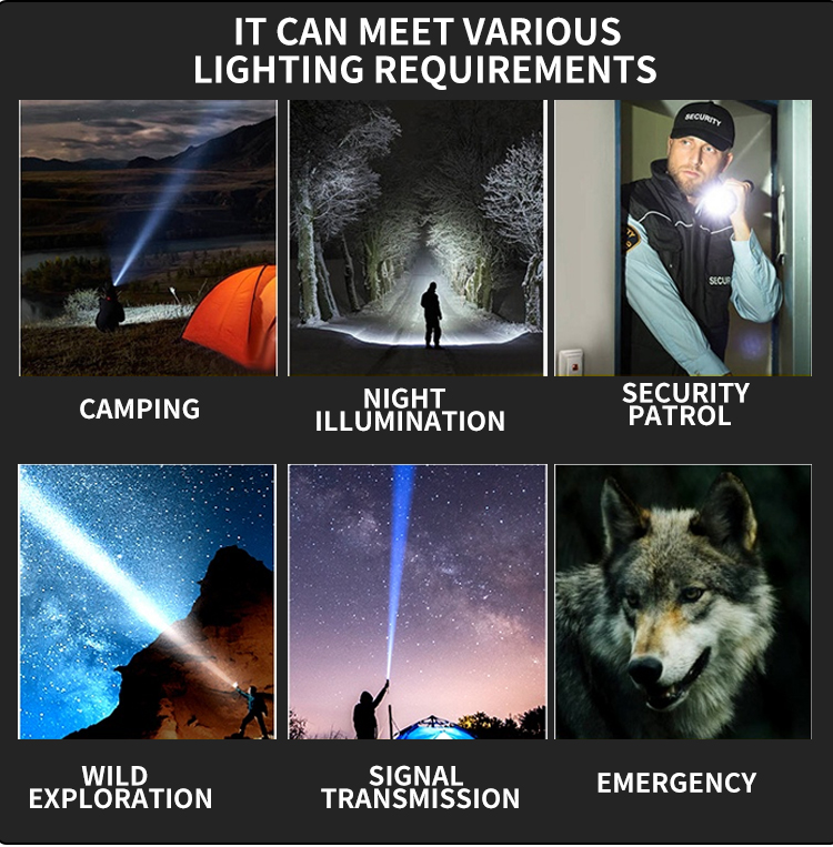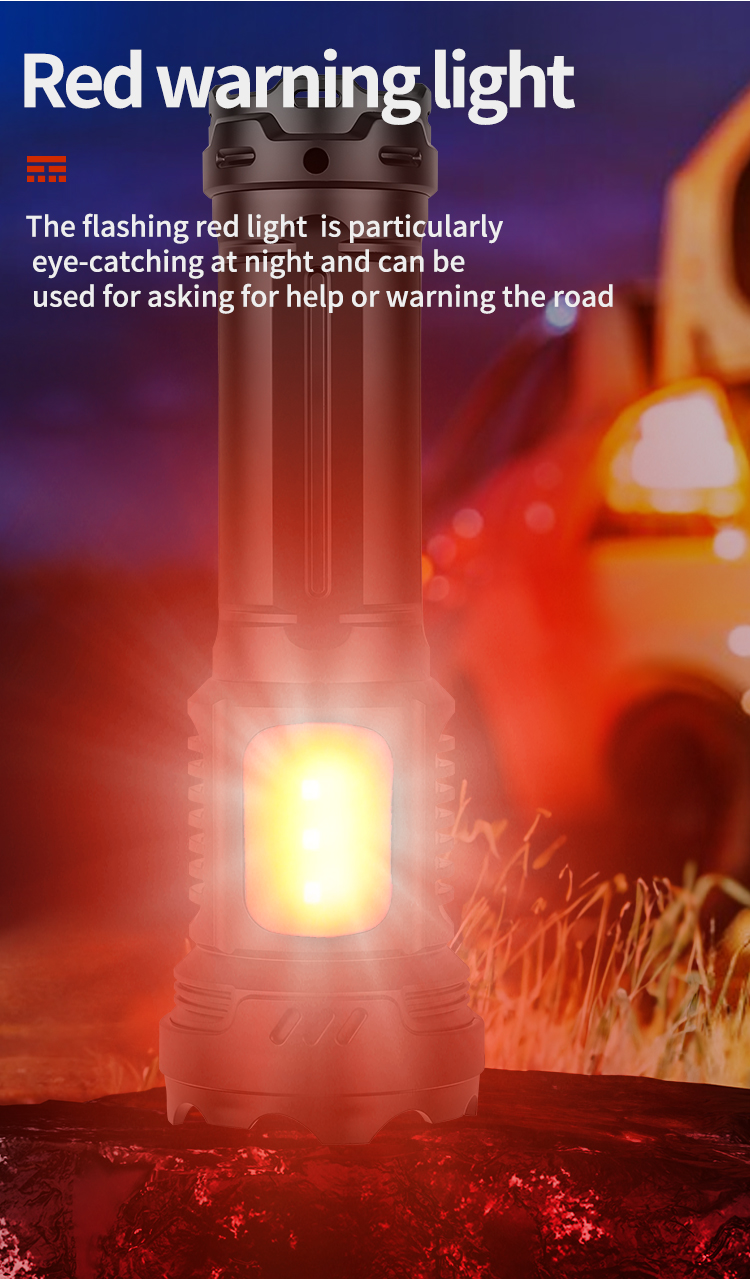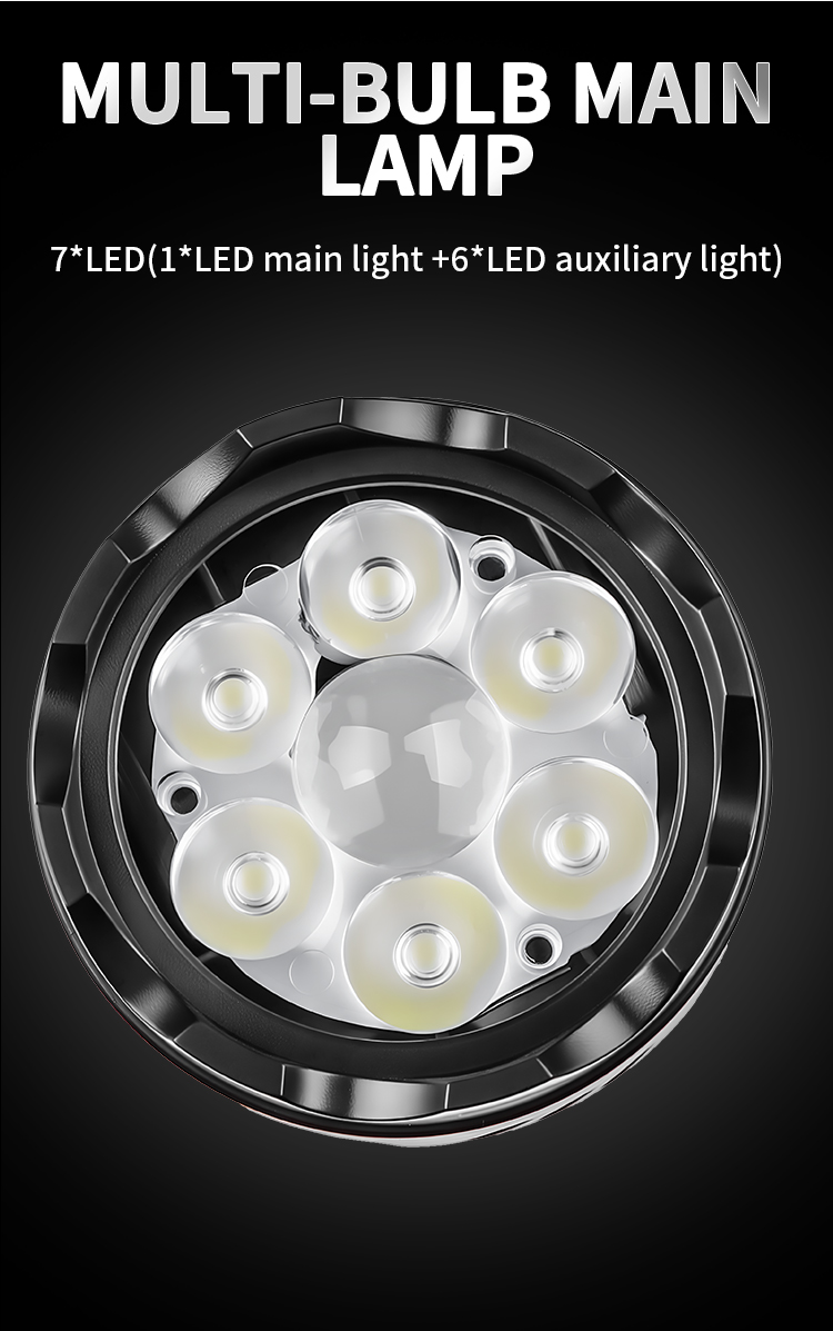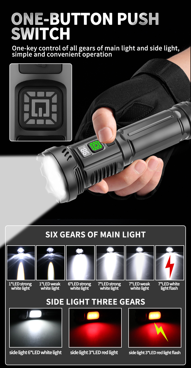 2. Versatile Light Output: Six adjustable main light gears and three side light gears, including white, red, and flashing red signals for emergencies.